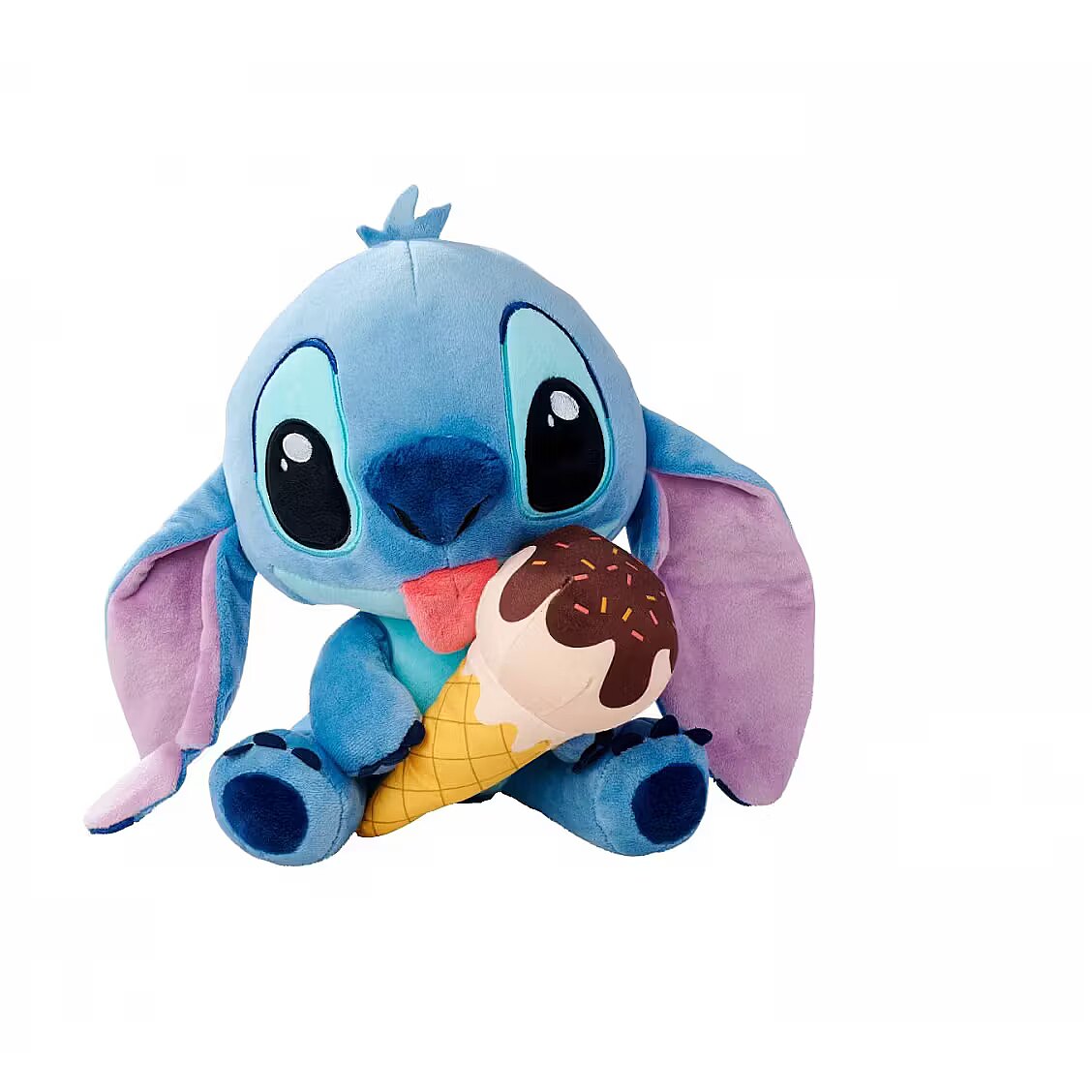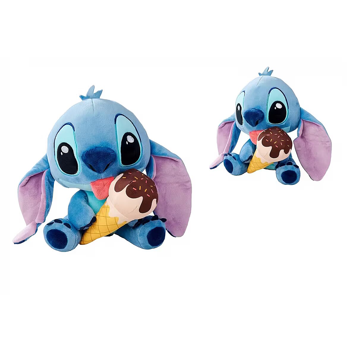 An original plush toy of Stitch, one of the most popular characters from Walt Disneys Lilo & Stitch films. Stitch is enjoying an ice cream. Height: 25 cm.
