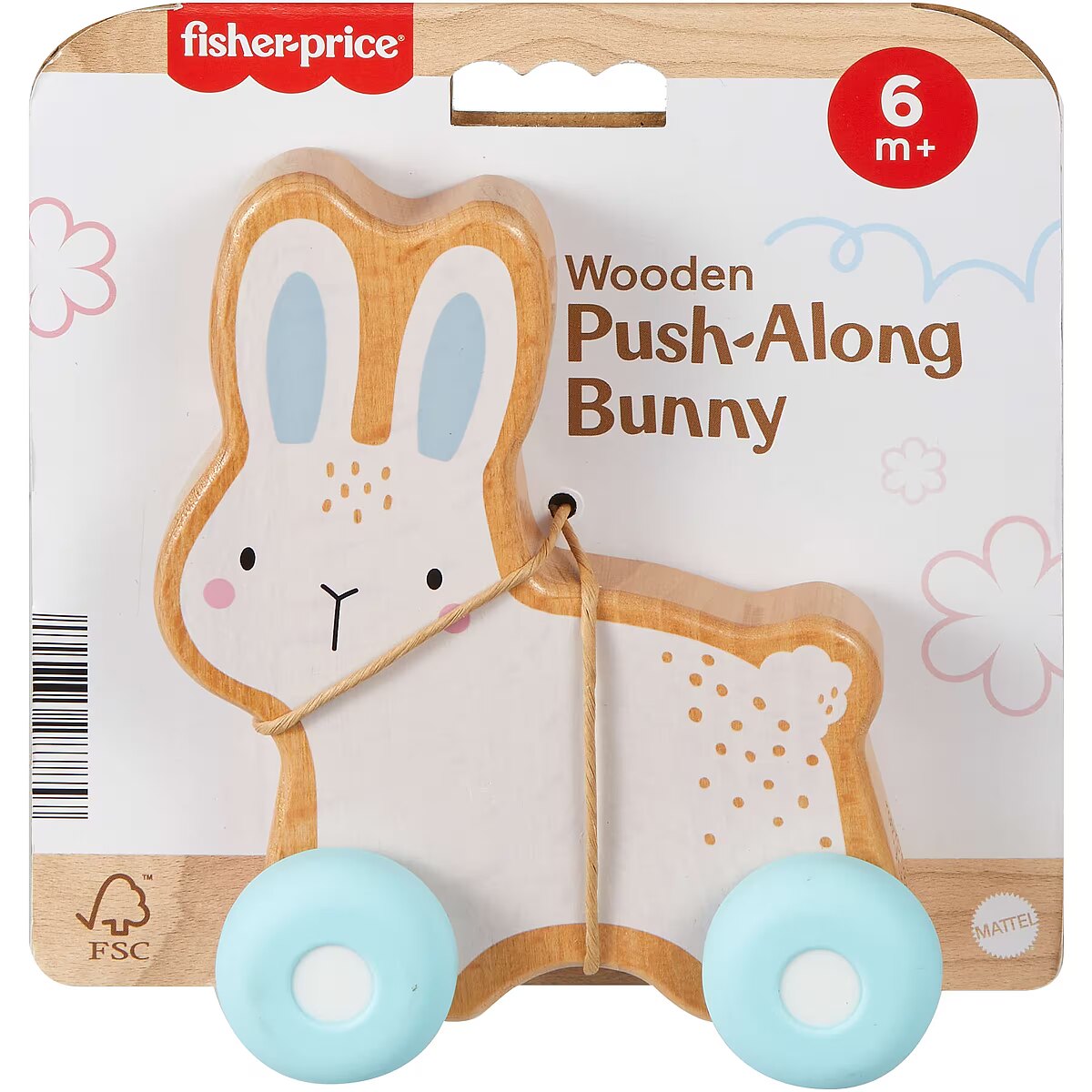LongProductName - Fisher-Price Wooden Push-Along Bunny Toy Vehicle for Baby Crawling Play. 1 Wood Piece
