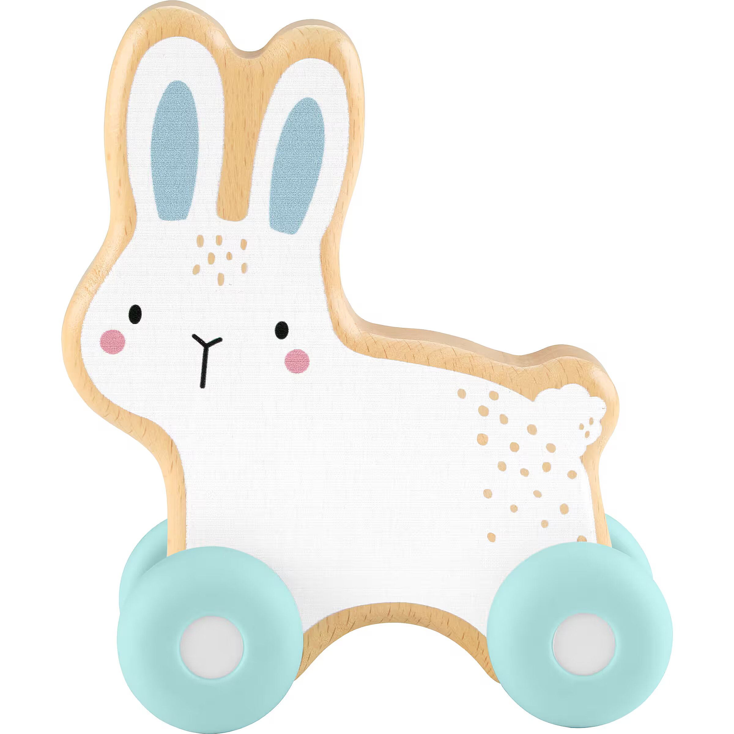 LongSummaryDescription - Fisher-Price Wooden Push-Along Bunny Toy Vehicle for Baby Crawling Play. 1 Wood Piece. Recommended age (min): 0.5 yr(s), Recommended age (max): 2 yr(s), Material: Wood, Product colour: Blue, White, Wood