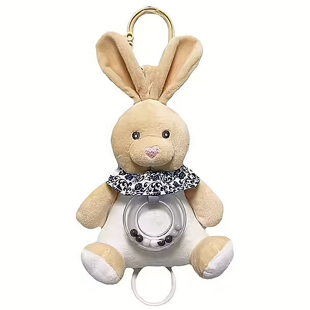 Description - Bunny music box beige 18 cm This charming music box is intended for the youngest children, perfect for girls and boys from the first month of life. Made of soft plush and plastic, ensuring safety and comfort during play. The music box is 18 cm high, which makes it perfect for little ones to cuddle and play with.
