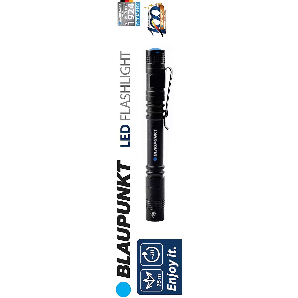 description_en - Blaupunkt BT-FL2015 is a practical and durable LED flashlight with a luminous flux of 100 lm. The flashlight uses 2 × AAA batteries (not included) to operate. IPX4 weather resistance and a long operating distance of up to 75 meters allow the flashlight to be used outdoors. Compact LED flashlight Battery type: 2 × AAA (not included) Luminous flux: 100 lm Working distance: 75 m IPX4 weather resistance