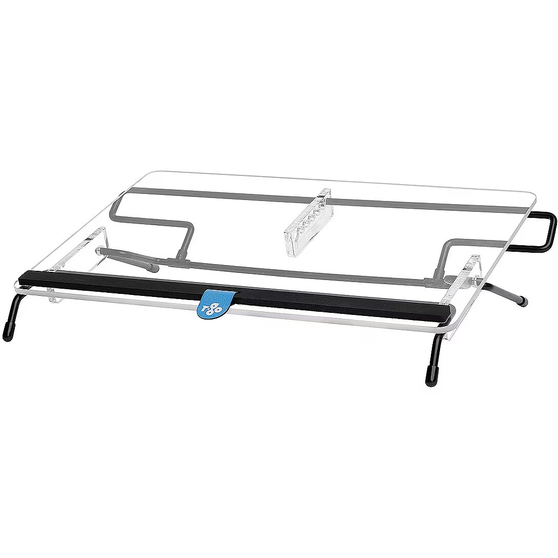 LongDesc - The R-Go Flex Read is an ergonomic adjustable document holder that you can also use as a writing work surface. This document holder is adjustable in 6 positions, so you automatically sit in an upright position while working. Easily set your ideal working height and angle with your left or right hand. At the front of the top is a soft foam wrist support. This allows you to write comfortably without unpleasant pressure on the wrists. The R-Go Flex Read is made in the Netherlands and has a unique design thanks to its black steel frame and transparent acrylic top.