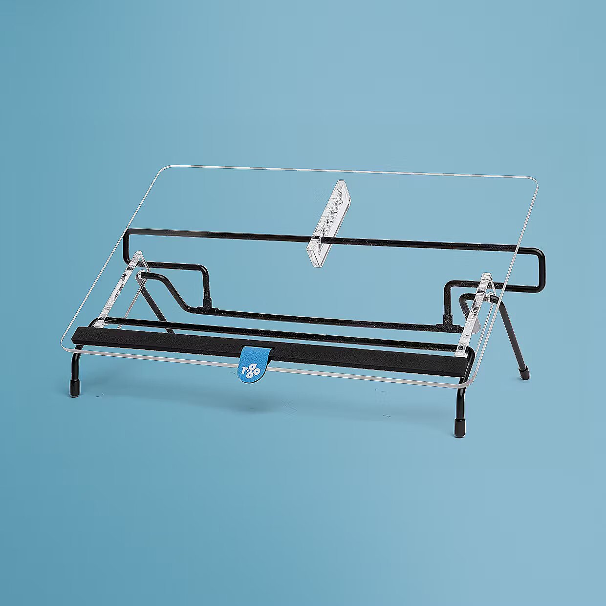 Description - The R-Go Flex Read is an ergonomic adjustable document holder, which you can also use as a writing work surface. This document holder is adjustable in 6 positions, so you automatically sit in an upright position while working. Simply adjust your ideal working height and angle with your left or right hand. At the front of the top is a soft foam wrist support. This allows you to write comfortably without unpleasant pressure on the wrists. The R-Go Flex Read is made in the Netherlands and has a unique design thanks to its black steel frame and transparent acrylic top.