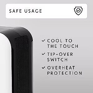 Technical details > Other features - Easy-to-use mechanical thermostat with two effect levels: 1200 W and 1800 W. Overheat protection. Tip-over switch.