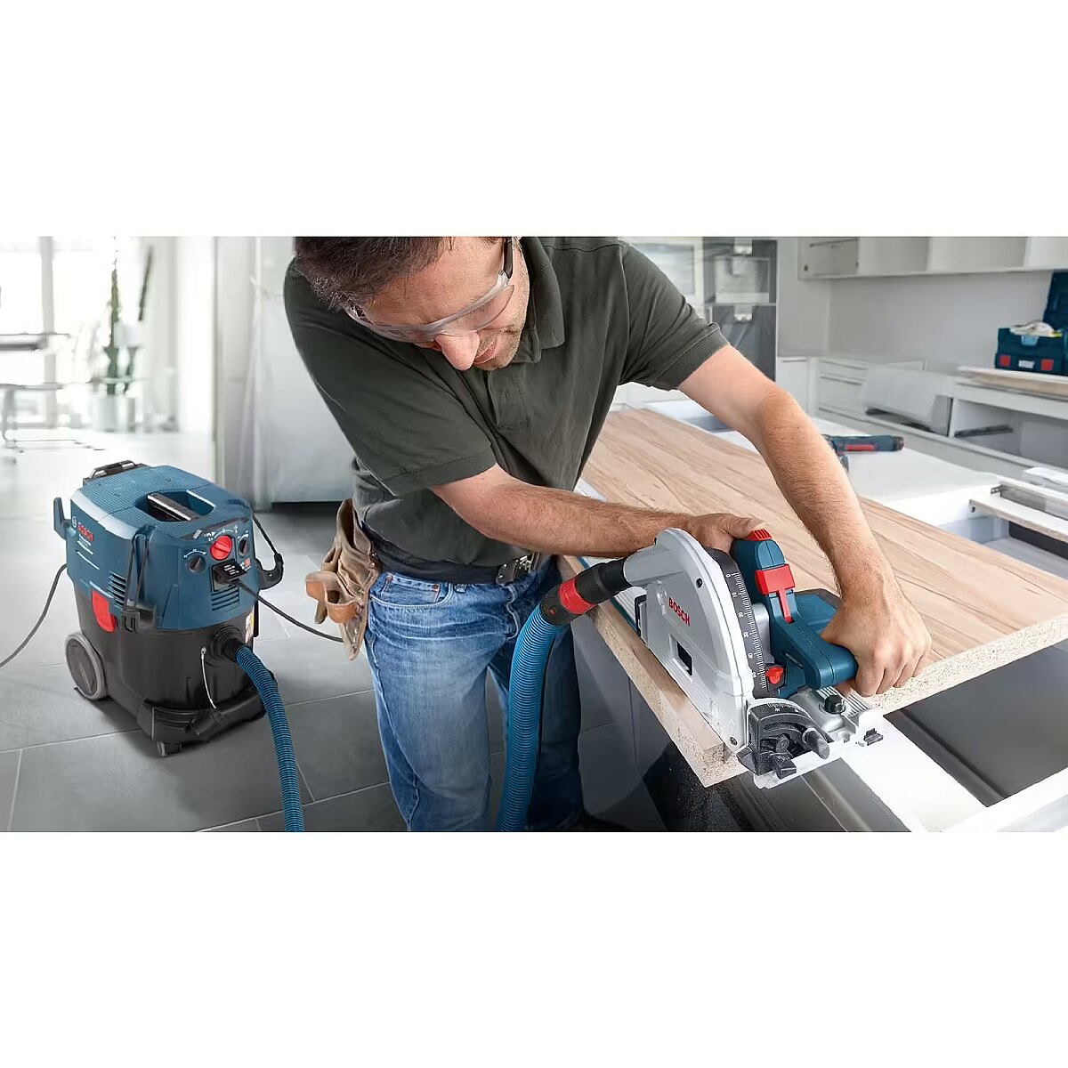 LongDesc - Precision and power for a clean cut- Clean, precise cuts due to high-quality machine components, precision saw blade and matching guide rail system- Comfortable work, especially indoors, due to highly efficient dust extraction and noise-reduced saw blade- Adjustable speed, powerful 1400-watt motor and Constant Electronic for cutting different materials such as wood, panel materials, aluminium and acrylic glass- Exact setting of cutting angle and depth for precise work results