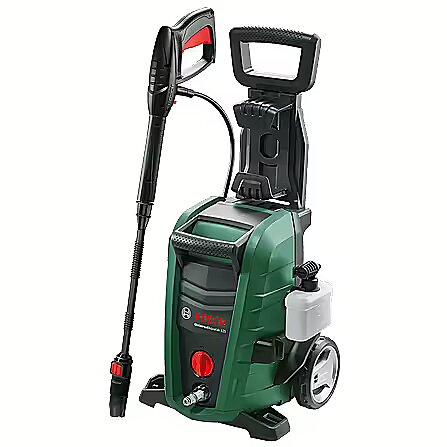 LongDesc - The UniversalAquatak 125 provides fast, flexible, and effortless cleaning. The Trio Nozzle handles a wide variety of cleaning tasks, from garden furniture to gutters. The fan, rotary, and pencil jet settings meet the individual challenges of each job. Save time cleaning cars with the 450-ml High-Pressure Detergent Nozzle. The extendable handle and large wheels offer increased mobility and easy storage. With a quieter motor pump, the high-pressure washer increases comfort when cleaning. Push-fit connections and in-use gun storage make cleaning simple.Easy-to-use – apply detergent quicklyThe 450-ml High-Pressure Detergent Nozzle reduces cleaning time by applying the soap quickly. A direct connection to the lance makes it simple to use. It is the ideal solution for deep cleaning cars and garden furniture.Safe and convenientIn-use gun storage makes it possible to store the gun while using the high-pressure washer for safety and convenience.Greater flexibilityBosch High-Pressure Washers are capable of self-priming from an external water source, such as a rainwater tank. This gives increased flexibility and mobility of cleaning.