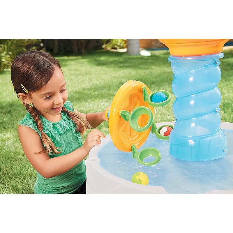 Accessories included - Plastikowy stół do zabawy z wodą Spiralny tor na piłki Koło z uchwytami do piłeczek Lejek z młynkami Pięć kolorowych psikających piłeczek Żywa kolorystyka Wspomaga rozwój motoryczny u maluchów