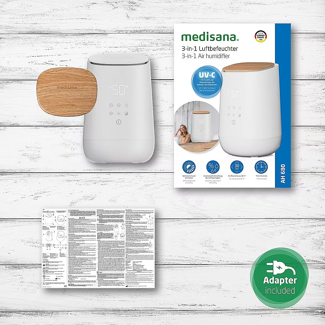 productName - Medisana AH 680 humidifier Ultrasonic 2.6 L White, Wood 24 W