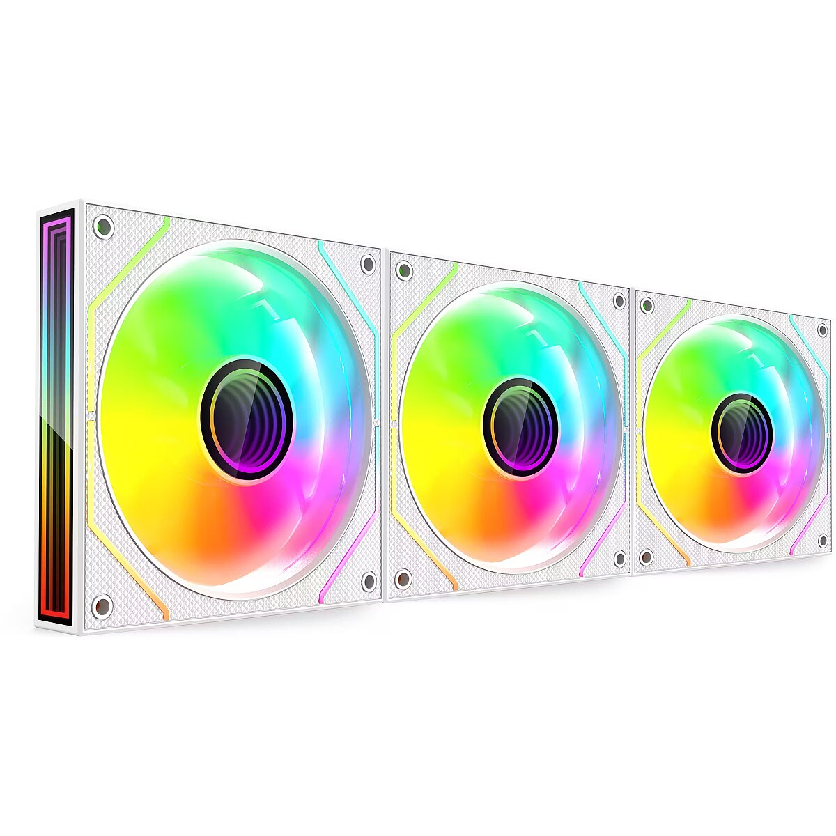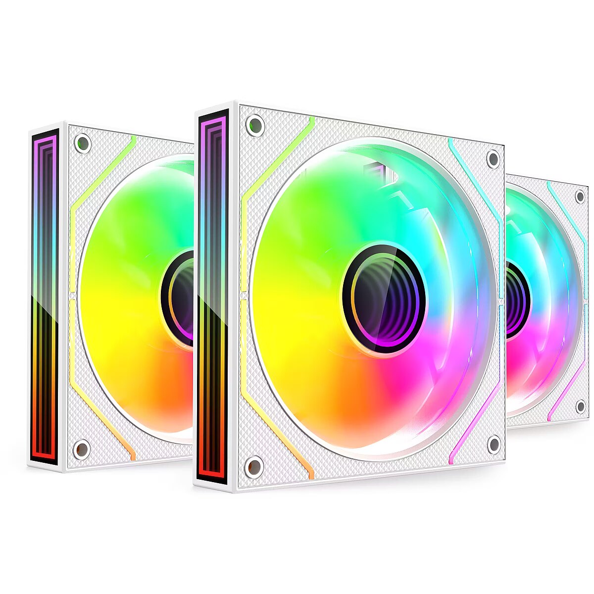 LongDesc - ARGB Fan Kit MF-3DPROKITThe MF-3DPROKIT fan kit combines cutting-edge design, performance, and advanced customization with 360º Infinity Mirror 3D lighting and a dynamic ARGB frame. Equipped with 120mm FDB-bearing fans, it ensures whisper-quiet, long-lasting operation. The ARGB hub supports up to 10 fans, and the RF remote control allows real-time speed and lighting adjustments. Compatible with ASUS AURA Sync, Mystic Light Sync, and RGB Fusion, it seamlessly integrates into any gaming setup.Infinity Mirror 3D LightingThe MF-3DPROKIT takes cooling aesthetics to the next level with its stunning 3D Infinity Mirror design. This set of three 120mm FDB-bearing fans not only ensures silent and reliable performance but also enhances your setup with immersive ARGB lighting. Featuring a dynamic frame with two LED strips and Infinity Mirror effects on both the core and edges, this fan kit creates an impressive visual impact, pushing your PC customization to the next level.Silence and Durability with FDB BearingsBuilt for optimal performance, the MF-3DPROKIT fans incorporate Fluid Dynamic Bearings (FDB), significantly reducing friction and wear for ultra-quiet, stable, and long-lasting operation.PWM Speed Control SystemThe advanced PWM control maximizes cooling efficiency with an adjustable speed range from 600 to 1600 RPM. This feature dynamically adjusts fan speeds based on system demand, ensuring the perfect balance between airflow and noise reduction, keeping temperatures stable even during intense gaming sessions.RF Remote Control & ARGB HubTake full control of your cooling and lighting setup in seconds. With the included RF remote, you can instantly adjust ARGB effects and fan speed, without the need for software. Switch between effects, optimize cooling as needed, and create the perfect ambiance effortlessly. Additionally, the included ARGB hub allows you to connect and sync up to 10 fans, unlocking unparalleled customization and performance.Full ARGB CompatibilityThe MF-3DPROKIT is fully compatible with ARGB controllers and motherboards, including ASUS AURA Sync, Mystic Light Sync, and RGB Fusion, ensuring seamless integration with your entire setup’s lighting effects.