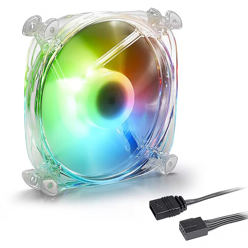 Technical_details - SHARK Disc PWM RGB Fan, case fan Strong cooling is the alpha and omega of a case. But it should also look good. That's why Sharkoon now offers the SHARK Disc PWM - a mainboard-controlled RGB fan with a hydrodynamic plain bearing for quiet performance. With a fan speed of up to 1,400 revolutions per minute, it ensures the desired cooling of the housing, while offering a long service life with an average lifespan of at least 50,000 hours. High performance does not always mean that there has to be a lot of noise. The SHARK Disc PWM clearly proves this. With just 24.8 decibels at full speed, it is hardly noticeable during operation. Its hydrodynamic slide bearing also ensures that the maximum noise development is by no means negative, even at the highest speed. Up to nine different addressable RGB LEDs can be set individually by the user, with which he can let his case shine in the brightest colors. The fan can emit up to 16.8 million different colors, which can be varied as desired using the mainboard's software. Type: fan Colour: transparent EAN code: 4044951034314 Type: case fan Usage: for PC case Fastening: screwed Volume: 24.8dB Equipment: LED lighting LED lighting: Yes, addressable RGB headers LED lighting: color | RGB RGB Standard: AURA Sync, Mystic Light, RGB Fusion, RGB LED Speed: 400 to 1,400 rpm Fan bearing: sleeve bearing Flow rate: 82.35 m3/h Air Pressure: Up to 1.82mm/H2O Power connector: 4-pin PWM Voltage range: 12 volts Cable length: 45 cm Additional information: In order to enable the greatest possible compatibility, the fan can be attached to the mainboard via a four-pin PWM connector. The RGB LEDs can be connected to the motherboard with a compatible ARGB controller via either a 5V DG or a four-pin 5V D-coded G connector. The SHARK Disc PWM can be synchronized with almost all common ARGB controllers, giving the user a free choice. For example, Asus' Aura Sync, MSI's Mystic Light Sync, Gigabyte's Fusion, or other ARGB controllers that have either the 3-pin 5V-DG or the 4-pin 5V-D-coded-G connector can be used . Accessories: available | Instructions, fan screws Dimensions: Fan1 | Quantity: 1 piece Width: 120mm Height: 120mm Depth: 25mm Weight: case fan | 97 grams
