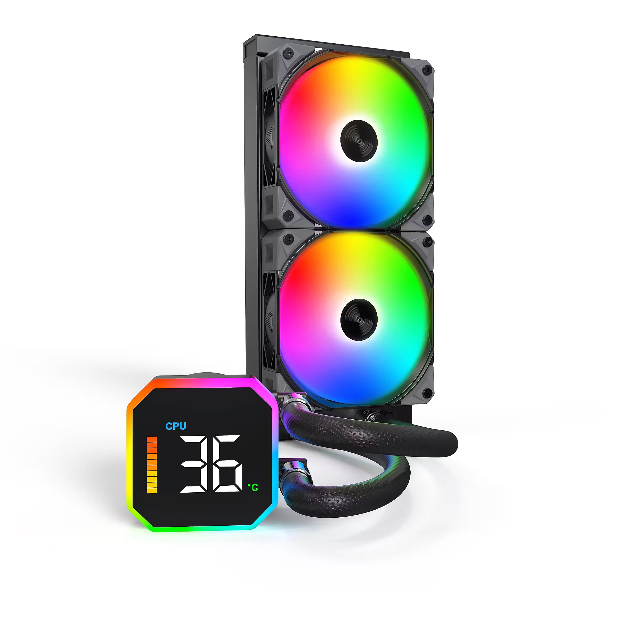 Meet HyperFlow Digital—crafted for stability under pressure and clarity at a glance. At its core, the Supreme Water Pump delivers relentless cooling power, while the sleek onboard display keeps real-time CPU and GPU temps front and center. This isn’t just cooling—it’s precision-engineered confidence in every degree.