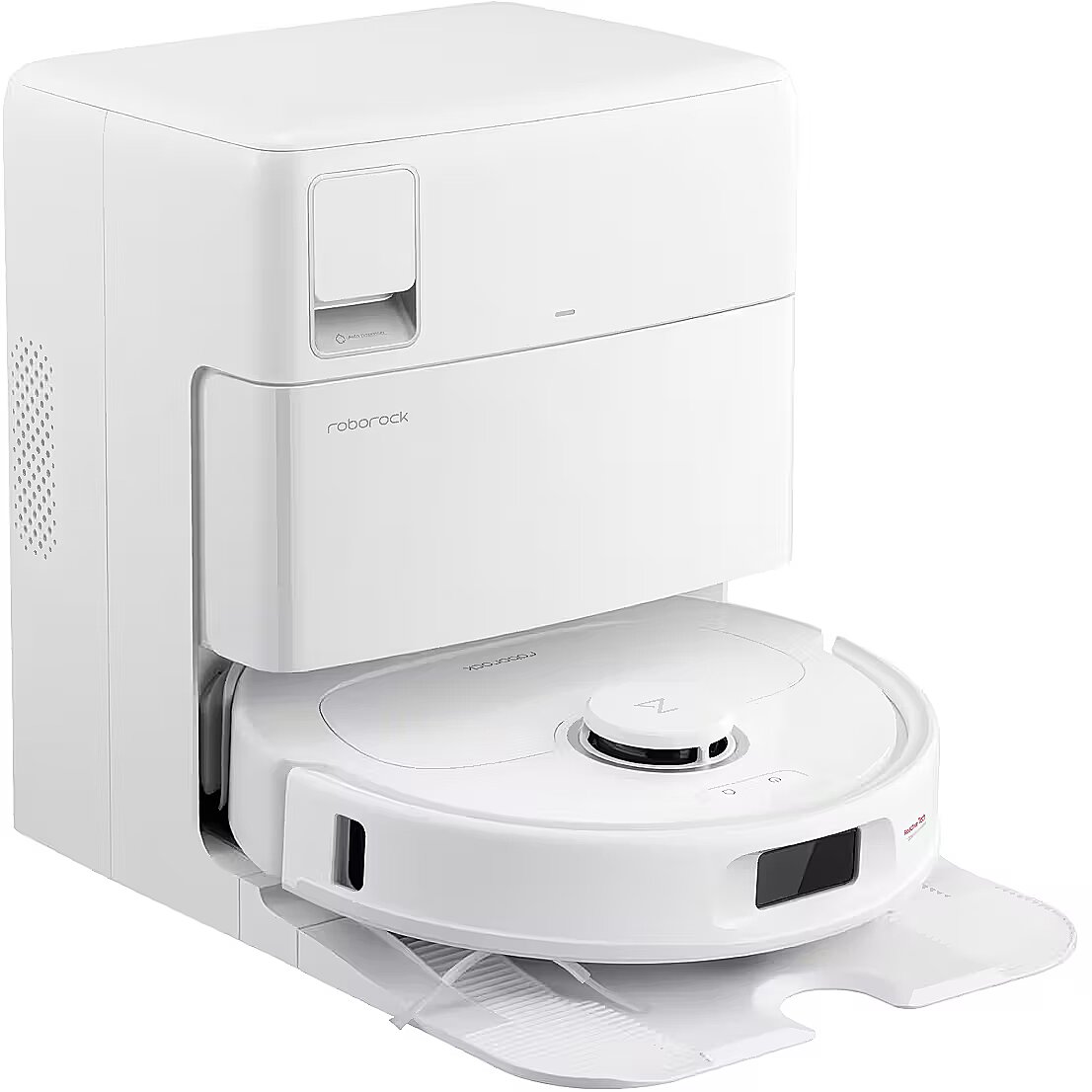 ShortSummaryDescription - Roborock Qrevo MaxV, Bagless, White, Round, 3.03 L, 63 dB, 0.33 L