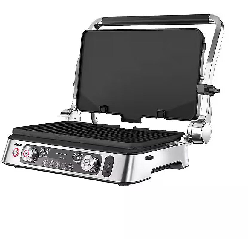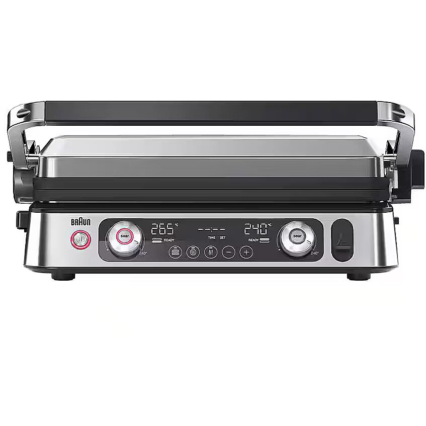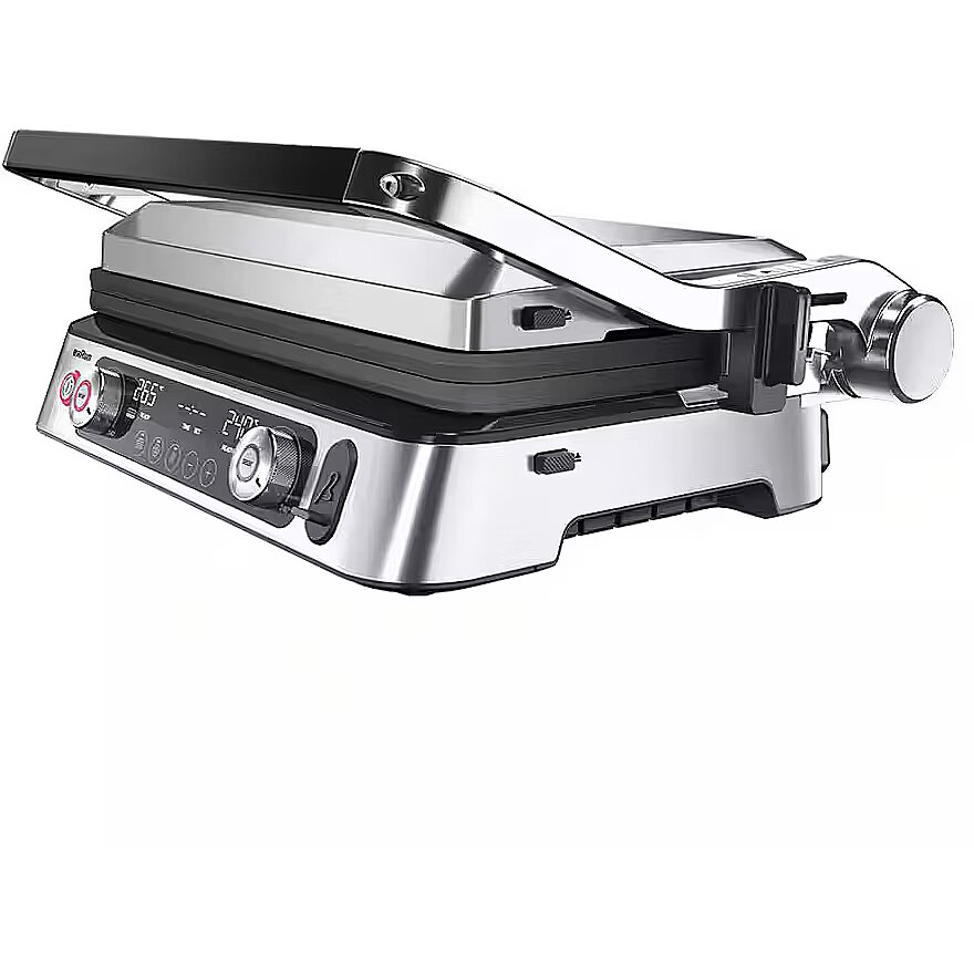 LongDesc - Enjoy professional level results and precision performance for breakfast, lunch, dinner and snacks. Experience unlimited versatility with two different plates and three cooking positions on Braun’s largest cooking surface.* You’ll love the speed and efficiency of 2200 watts of power via the embedded heating elements for faster cooking and the precision of the integrated thermoprobe. And if you’re serious about searing, the Sear Button sends the grill to 265°C to form a rich brown crust that amplifies the flavour of any cut of meat.*27% larger than MultiGrill 7.Unlimited versatilityDue to the smart combination of two sets of different plates and three flexible cooking positions you can enjoy unlimited versatility. Experience perfect grilling results for breakfast, lunch, dinner and snacks.Dishwasher safeThe non-stick plates as well as the drip tray are all dishwasher-safe which makes cleaning nice and simple.Integrated thermoprobeThanks to the single degree precision of the integrated thermoprobe you can enjoy your favourite meat grilled to perfection from rare to well done.