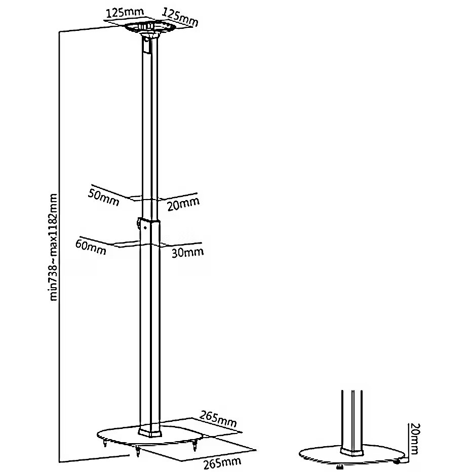 Dimensions - Height adjustment: 738 - 1182 mm Base dimensions: 265 x 265 mm