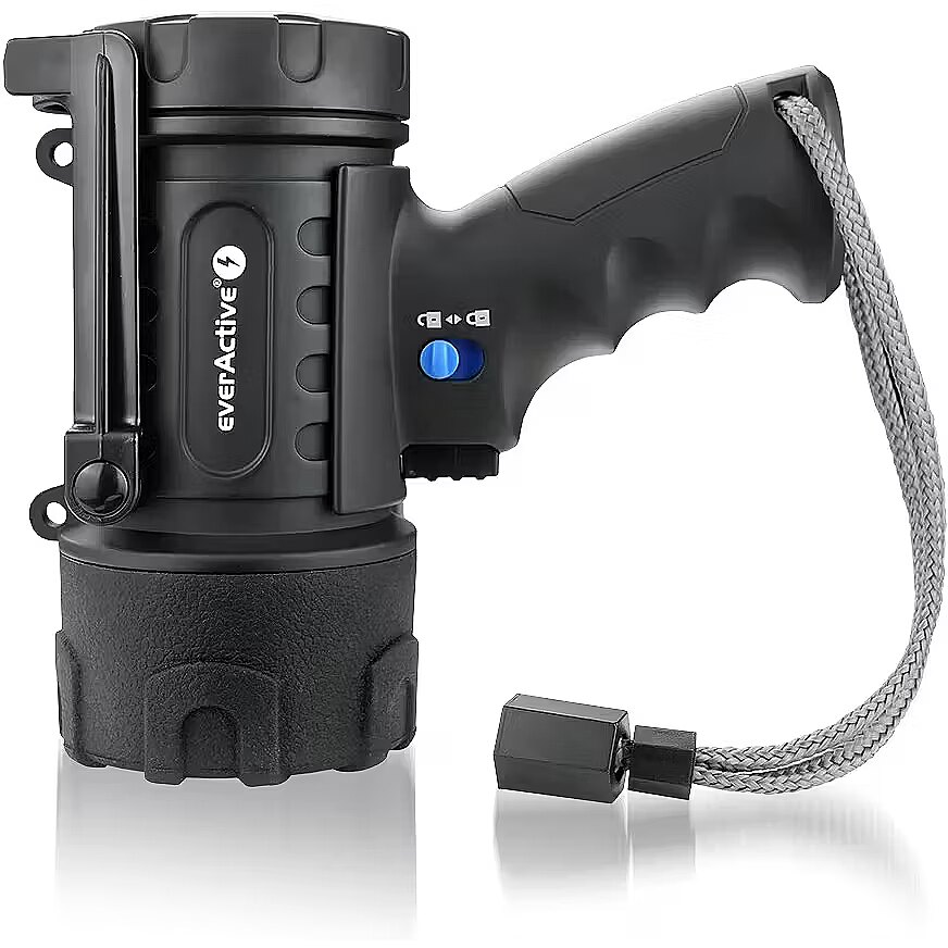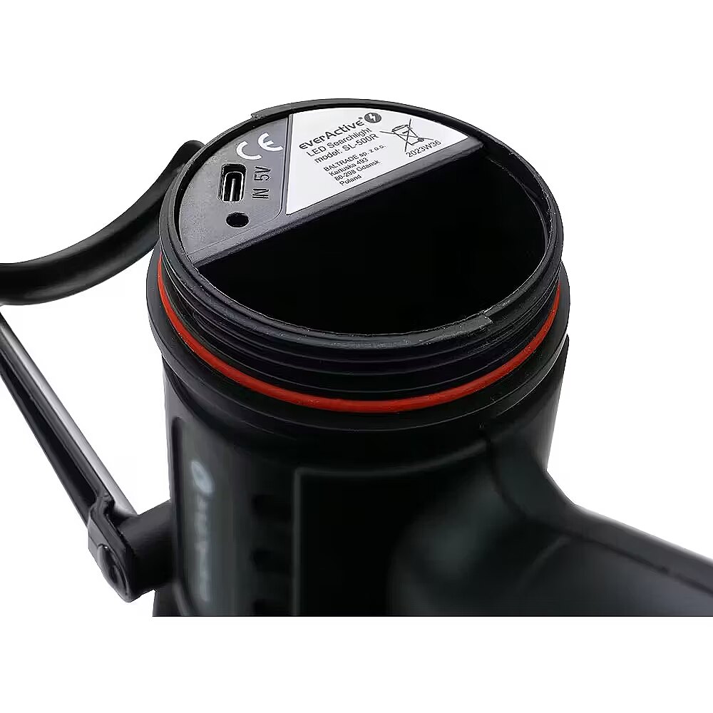 Description - The SL-500R is a handy yet powerful searchlight from the everActive brand. Its maximum light output of 500 lumens provides excellent illumination of the surrounding area, even in complete darkness. The undeniable advantages of our flashlights include high-quality workmanship, versatility, and the use of the most modern solutions available on the market. The everActive SL-500R searchlight is exceptionally comfortable to use handy and made of durable plastic characterized by increased durability. Our flashlight is equipped with a modern CREE XP-G 3 LED, making it exceptionally powerful for its size. Thanks to its high-quality components, the searchlight feels complete and is suitable for use at home, on a campsite, or during an evening walk in the forest. The device's housing is made of exceptionally durable plastic and has an IP67 rating. The device is powered by a 2600mAh lithium-ion battery! The searchlight is charged via the device's integrated USB-C port; charging time is approximately 5 hours. The set includes the searchlight, charging cable, lanyard, and user manual. All items are neatly packaged in the manufacturer's original box.