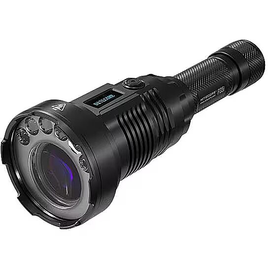 Description - The Nitecore P35i is a highly innovative and versatile flashlight that stands out due to its dual-beam system, combining both LEP (Laser Excited Phosphor) technology for an extreme spotlight and multiple LEDs for a wide floodlight. This unique combination makes it an incredibly powerful and adaptable tool for a wide range of applications, from long-range searching to illuminating close-up areas. Here's a detailed breakdown of its features: Dual-Beam System (LEP and LED): LEP Spotlight: The central element is a Class 1 LEP (Laser Excited Phosphor) light, which produces a highly focused, ultra-long-distance beam. This is the source of its impressive throw. Max Beam Distance: Reaches an incredible 1650 meters (over a mile), allowing it to pinpoint objects at extreme distances. Max Output (Spot Mode): Up to 410 lumens. While lower in lumen count than the flood, the candela (beam intensity) is exceptionally high due to its focused nature (678,000 cd). LED Floodlight: Surrounding the LEP module are 6 x CREE XP-G3 LEDs, which provide a broad, even flood beam for illuminating wider areas. Max Output (Flood Mode): Up to 3,000 lumens. Max Beam Distance (Flood Mode): Around 200 meters. Mix Mode: The P35i allows you to combine both the LEP spotlight and the LED floodlight, providing a versatile beam that offers both long-range focus and immediate area illumination. The mix mode can also achieve 3,000 lumens max output with the long throw. 13 Brightness Levels: Across the three user modes (Spot, Flood, Mix), the P35i offers a total of 13 different brightness levels, ranging from an ultralow 10 lumens (Flood) or 25 lumens (Spot) for extended runtimes, up to the full 3,000 lumens. User Interface and Control: Multifunctional OLED Real-time Display: A prominent feature is the integrated OLED screen on the head of the flashlight. This display provides crucial real-time information, including: Current brightness level (lumens) Selected beam type (Spot, Flood, Mix) Estimated remaining runtime Battery voltage Beam throw distance Dual Switches: It utilizes a user-friendly dual-button interface: Tactical Tail Switch: Controls power on/off and momentary illumination. Side Mode Button: Cycles through brightness levels and switches between the three main modes (Spot, Flood, Mix) by holding it down while clicking the tail switch. Remote Switch Compatibility: The P35i comes with an included RSW2i remote switch that connects via the USB-C port on the tailcap. This is particularly useful for tactical or hunting applications where the flashlight might be mounted on a firearm. The remote switch allows for constant on, momentary on, and instant access to strobe. Mode Memory: The flashlight has a mode memory function, so it will turn on in the last used mode. Power and Charging: Proprietary 21700i Battery: It's powered by a high-capacity 5,000mAh Nitecore NL2150HPi 21700i Li-ion battery. This "i Series" battery is essential for the P35i's performance and is designed for efficient high-current discharge. Note: It is generally only compatible with Nitecore 21700i Series batteries or 2x CR123/RCR123 batteries (with a battery magazine, but these do not support Turbo output or in-torch charging). It is not compatible with conventional 21700/18650 batteries. USB-C Rechargeable: Features a USB-C charging port on the tailcap for convenient and relatively fast charging. A full charge for the included 5,000mAh battery takes approximately 4 hours with a 5V/2A adapter. Battery Level Indicator: The OLED display shows detailed battery level readings. Design and Durability: Robust Construction: Made from aero-grade aluminum alloy with a HA III military-grade hard-anodized finish for exceptional durability and corrosion resistance. Large Head with Cooling Fins: The head is notably large to accommodate both the LEP and LED systems, along with deep cooling fins to manage heat dissipation effectively. IP68 Rating: Waterproof and submersible up to 2 meters. Impact Resistance: Withstands impacts from up to 1 meter. Optical Lenses: Features optical lenses with double-sided scratch-resistant coating. Dimensions and Weight: It has a length of 186.9mm (7.36 inches), a head diameter of 65mm (2.56 inches), and weighs around 296.6g (10.46 oz) without the battery. Tail Standing: The design of the tailcap typically allows for tail standing. Applications: The Nitecore P35i is ideal for: Hunting Search and Rescue operations Patrolling Law Enforcement Industrial Maintenance Long-range observation In essence, the Nitecore P35i is a highly advanced, "do-it-all" flashlight that brilliantly merges the best aspects of long-throw LEP technology with wide-angle LED flood illumination, all controlled by an intuitive interface with a real-time OLED display.