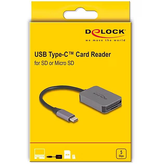 Name - DeLOCK USB Type-C Card Reader for SD or Micro SD memory cards, grey card reader