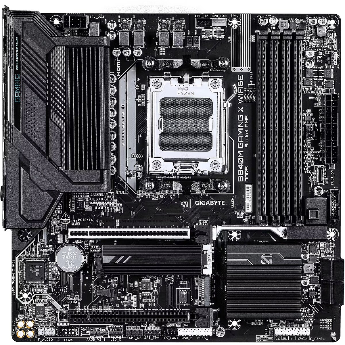 ShortSummaryDescription - GIGABYTE B840M GAMING X WIFI6E Motherboard - AMD Ryzen 9000 CPUs, 8+2+2 Phases VRM, up to 8200MHz DDR5(O.C), 2xPCIe 4.0 M.2, Wi-Fi 6E, 2.5GbE LAN, USB 3.2 Gen 1, AMD, Socket AM5, AMD Ryzen 7000 Series, AMD Ryzen 8000 Series, AMD Ryzen 9000 Series, Socket AM5, DDR5-SDRAM, 256 GB