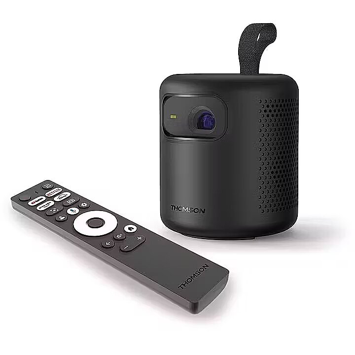 Description - The Thomson Vega PG35B LED LCD portable gaming projector has 350 ANSI lumens, a contrast ratio of 350:1, and HDTV 1920 x 1080 resolution. It is an LED projector with a light life of 30,000 hours, which equates to over 20.5 years of enjoyment at four hours per day. An image width of up to 190 cm is possible. However, in room lighting, the image should be smaller. We recommend a maximum of 127 cm. The built-in 33.48 Wh battery means that no power supply is required, allowing the projector to be set up quickly and flexibly. Google TV turns the projector into a versatile media hub that can be seamlessly integrated into a smart home. The model recognizes Airplay and Miracast screen mirroring signals, making it possible to play high-resolution videos with surround sound directly via Wi-Fi from a smartphone, tablet, or PC (Android, Windows, and iOS). In addition, the Bluetooth capability is a useful addition to the projector, especially for wireless audio transmission. Even 1080P and 4K (compressed) video signals are no problem for the projector.