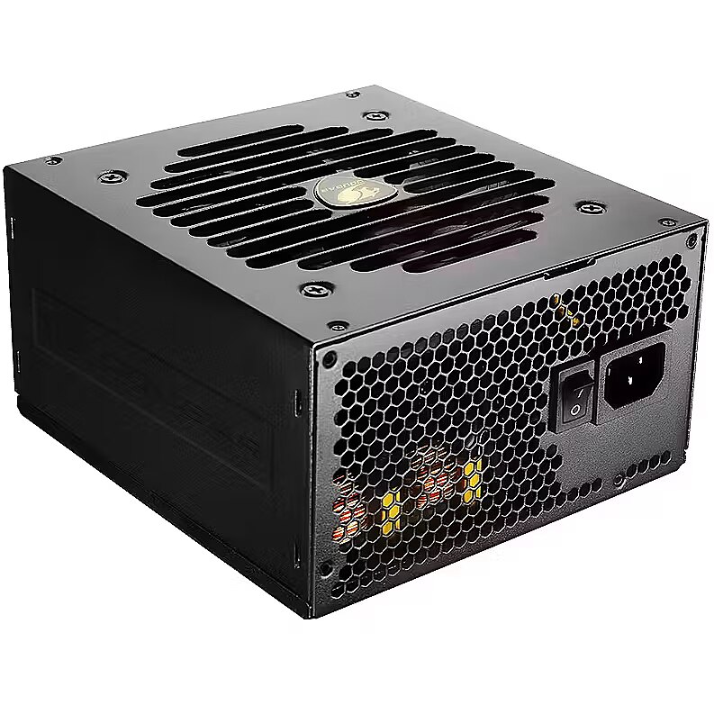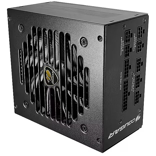 This Cougar brand power supply unit has an 80 PLUS Gold energy efficiency certificate and a power output of 750W.