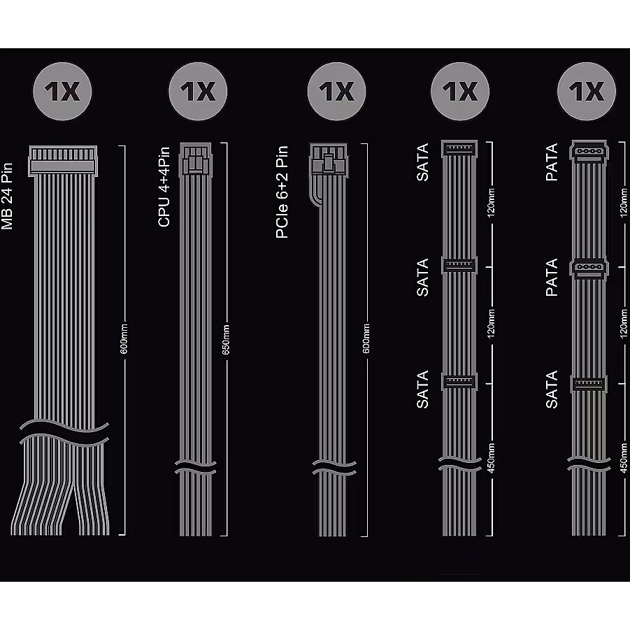 This power supply unit does not have modular cables – all its cables are attached to the unit and are not detachable. Despite the simple design, it will fulfill its functions just as well as a power supply unit with modular cables.