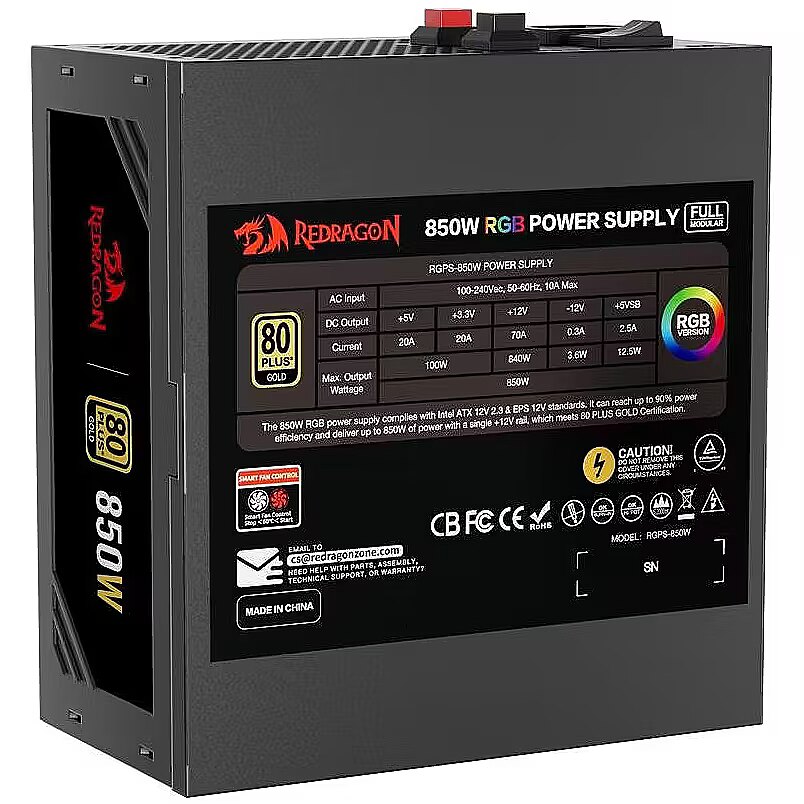 Redragon GC-PS007-1-V2, 850W, 80PLUS Gold, ATX 3.1, PCIe 5.1