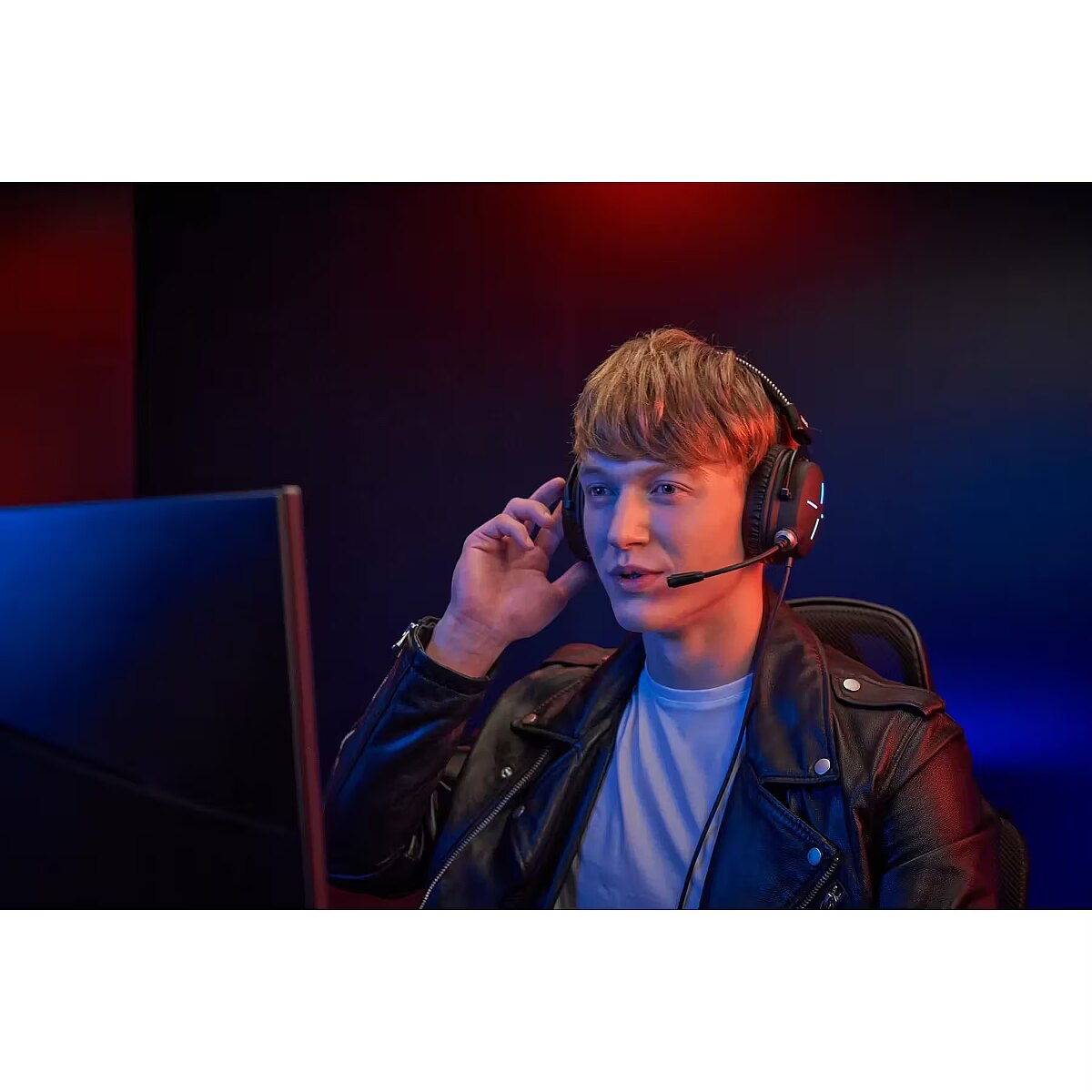 Technical details > Other features - Omni-Directional Microphone: Enhance team communication with the omni-directional mic; Clear, Crisp Audio: Enjoy high-sensitivity audio for clear sound; RGB Lights and Over-Ear Design: Immersive design with vibrant RGB lights
