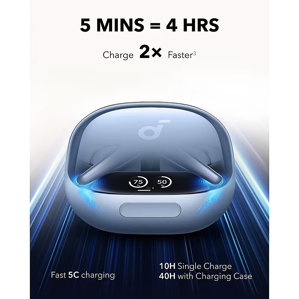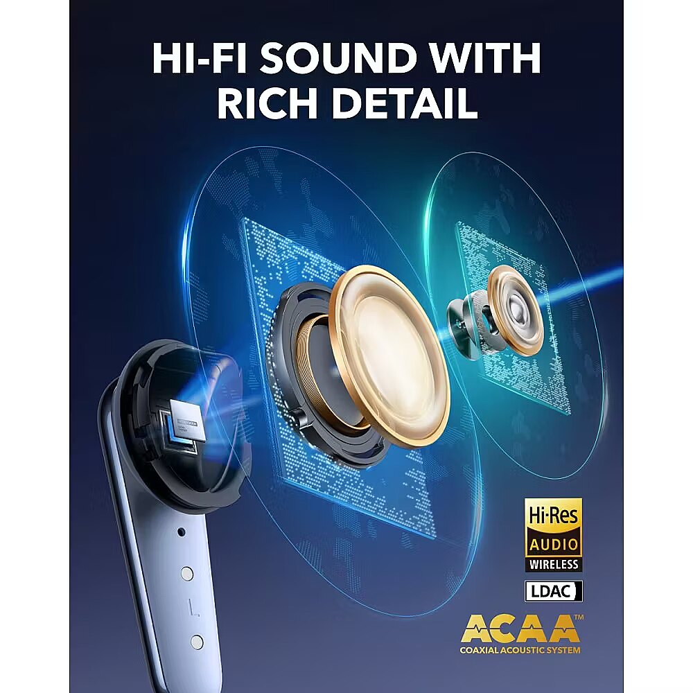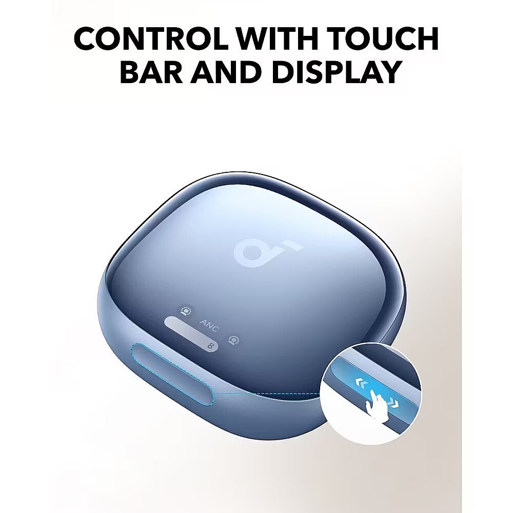 LongDesc - Enjoy Uninterrupted Music Journey with New True-Wireless EarbudsMatchless Noise Cancellation: 7 sensors detect noise from every angle. From planes to trains, enjoy a serene journey with 3× stronger noise reduction.Real-Time Adaptive Noise Reduction: Adapts to your ever-changing environment every 0.3 seconds, ensuring optimal, seamless noise reduction.Effortless Controls: The case's touch bar and display let you fine-tune the noise-cancelling levels at any time with a simple swipe on the case.Studio-Level High-Fidelity Music: Indulge in crisp, full-bodied sound with ACAA, a 10.5mm driver, a titanium-coated tweeter, and a digital crossover.Super Fast Charging: Charge 2× faster. A 5-minute refuel offers 4 hours of playtime. Up to 10 hours from one charge and up to 40 hours with the case.6-Mic AI Clear Calls: With a noise cancelling algorithm, a wind noise reduction tech, and six microphones, enjoy clear calls wherever you are.Liberty 4 Pro7-Sensor Precise Noise Cancelling1. Based on tests conducted in the soundcore lab, Liberty 4 Pro can reduce up to 12.2 dB more noise in the 600-700Hz range when tested from the opposite side of the earbud. This improvement is three times more effective than with the adaptive noise cancelling algorithm turned off. | 2. Calculated based on the recalibration frequency of the ANC algorithm, which is three times per second when no audio is being played. | 3. It charges twice as fast as Liberty 4 NC. | 4. LDAC enables the transmission of audio content at the maximum bitrate of 990kbps, which transmits 3× more data compared with standard SBC codec with the bitrate of 328kbps.You can turn on LDAC mode in the soundcore app. LDAC is only compatible with Android devices. | LDAC and LDAC logo are trademarks of Sony Corporation. | Hi-Res Audio logo and Hi-Res Audio Wireless logo are registered trademarks or otherwise trademarks of Japan Audio Society.React to Every Noise as You GoRecalibrates NoiseCancelling Every 0.3s² forEver-Changing Environments7-Sensor Precise Noise CancellingLiberty 4 Pro noise cancelling earbuds boast 7 sensors—6 sound sensorsand 1 barometric pressure sensor—to capture noise from every angle.From planes to trains, enjoy a serene journey with 3× stronger noise reduction.3× Stronger Noise ReductionFind your oasis of calm even in bustling city life and crowded flights. Six sound sensors, one barometric sensor, and a real-time algorithm ensure up to 3× stronger¹ noise cancellation.Control with Touch Bar and DisplayThe touch bar and display let you fine-tune, the noise cancelling levels of these wireless earbuds at any time with a simple swipe on the case.Super Fast ChargingLiberty 4 Pro noise cancelling earbuds charge 2× faster than the previousmodels with the 5C battery. A 5-minute recharge offers 4 hours of playtime.Enjoy up to 10 hours between charges, extendable to 40 hours with the case.Hi-Fi Sound with Rich DetailFeature the enhanced ACAA acoustic architecture, a 10.5mm bassdriver, a titanium-coated tweeter, and a digital crossover for peakdriver performance. Indulge in crisp, full-bodied sound perfectedwith nuances.