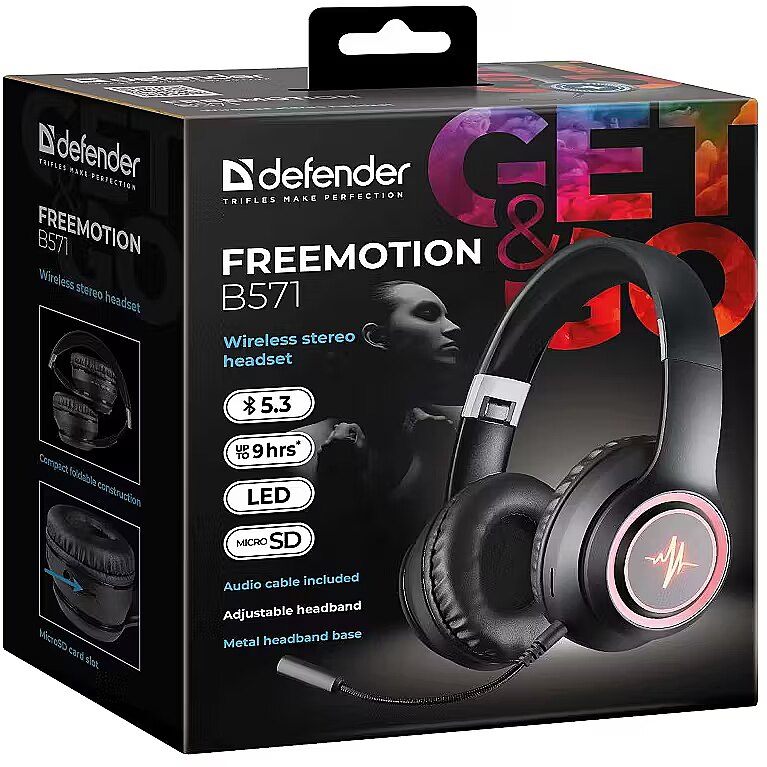productName - HEADPHONES DEFENDER BLUETOOTH FREEMOTION B571 BLACK LED