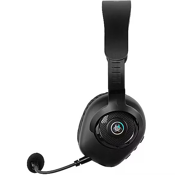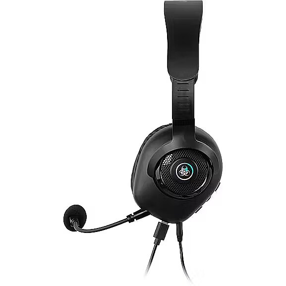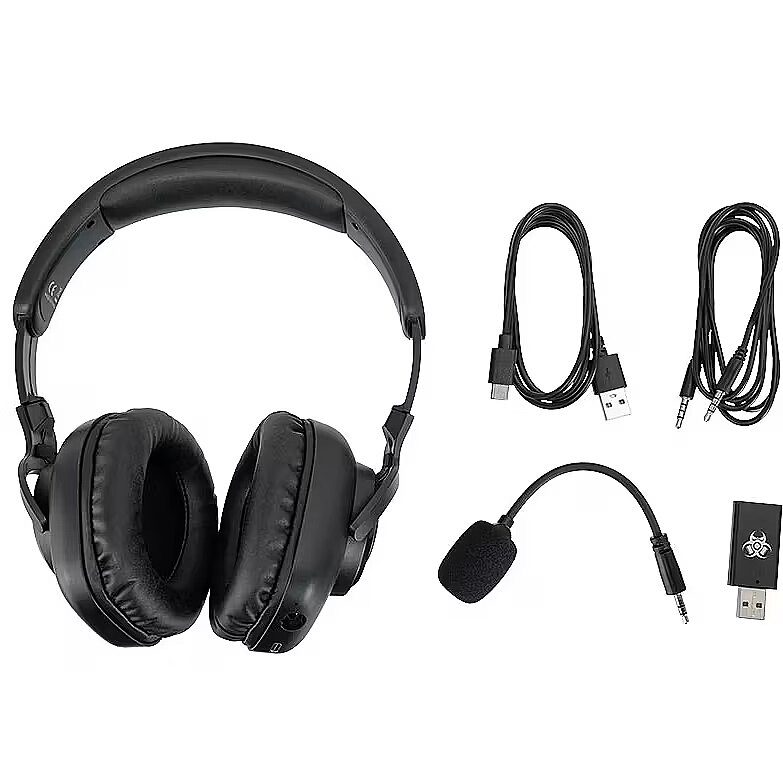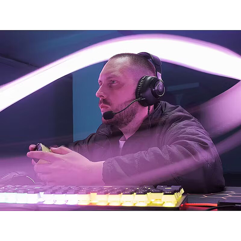 The headphones connection to the computer. A cable for a long-term and stable sound experience is the most popular type of connection.