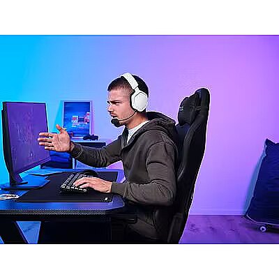 Desc - Vadu/Bezvadu: Bezvadu, Tips: Pilnizmēra austiņas, Kategorija: Datorspēlēm, Krāsa: Balta, Vada garums: 1.2 m, Mikrofons: Noņemams, Vadība: Ir, Pieslēgums: USB-C / USB-A / 3.5mm, Pretestība: Nav zināms, Jutīgums: 101 db, Frekvenču diapazons: 20 - 20000 Hz, Izolācija no trokšņa: Nav, Garantija: 2 gadi
