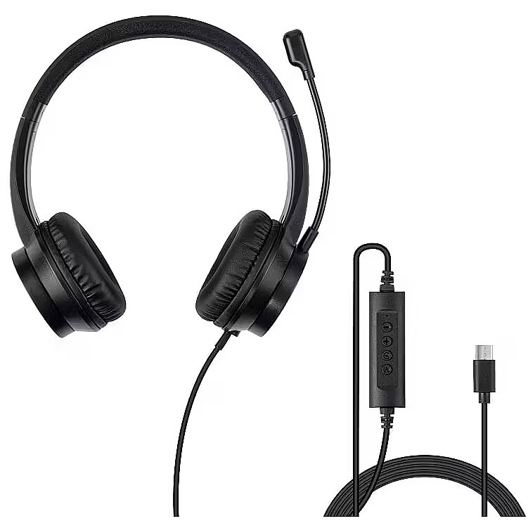 Description - Wired headsets are essential for seamless audio playback and clear speech, making them ideal for unified communication environments, home office conferencing, and office-based call setups. The USB Office Headset with USB-C Adapter offers professional-grade connectivity to PCs, laptops, and other devices with USB Type-C ports. Its binaural design delivers crisp stereo audio, effectively replacing built-in speakers on laptops or PCs. The flexible, omni-directional microphone ensures crystal-clear voice capture for superior audio clarity during video calls. Convenient in-line controls allow for quick adjustments to volume and muting, perfect for video conferencing flexibility. With its lightweight design, the headset provides all-day comfort, making it ideal for long hours in offices or call centers. It is also fully compatible with popular VoIP and office software. The included USB Type-C to USB Type-A adapter ensures broad compatibility, allowing the headset to connect to both laptops with USB Type-C inputs and desktop PCs with only USB Type-A ports. Additionally, built-in status LEDs provide a quick visual cue when the microphone is muted, ensuring privacy when needed.USB Type C headset for use in unified communications, call centers & home office setupsIn-built omni-directional microphone for vocal clarityLightweight, adjustable designIn-line control for volume adjustment and mute functionality