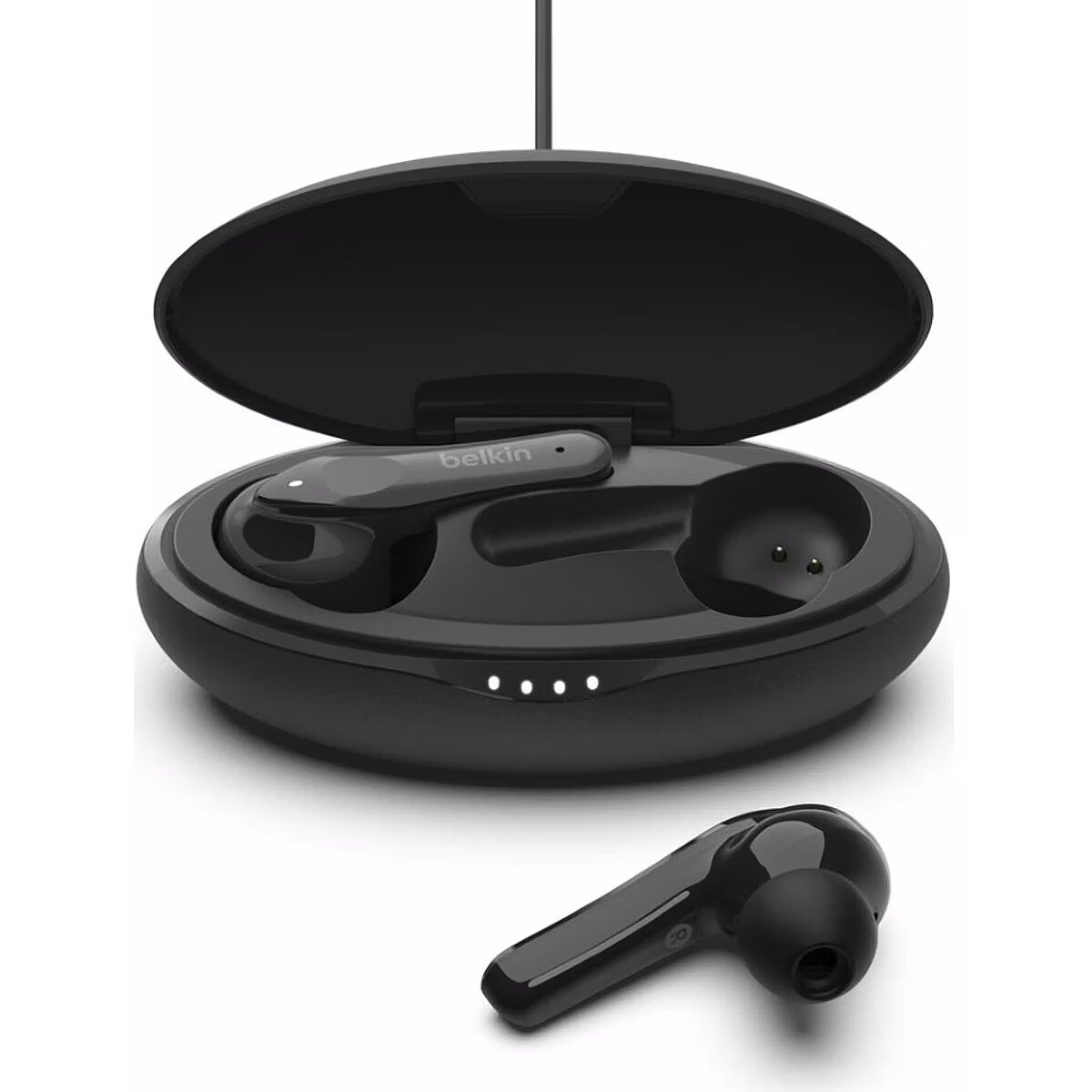 The headphones connection to the computer. A cable for a long-term and stable sound experience is the most popular type of connection.