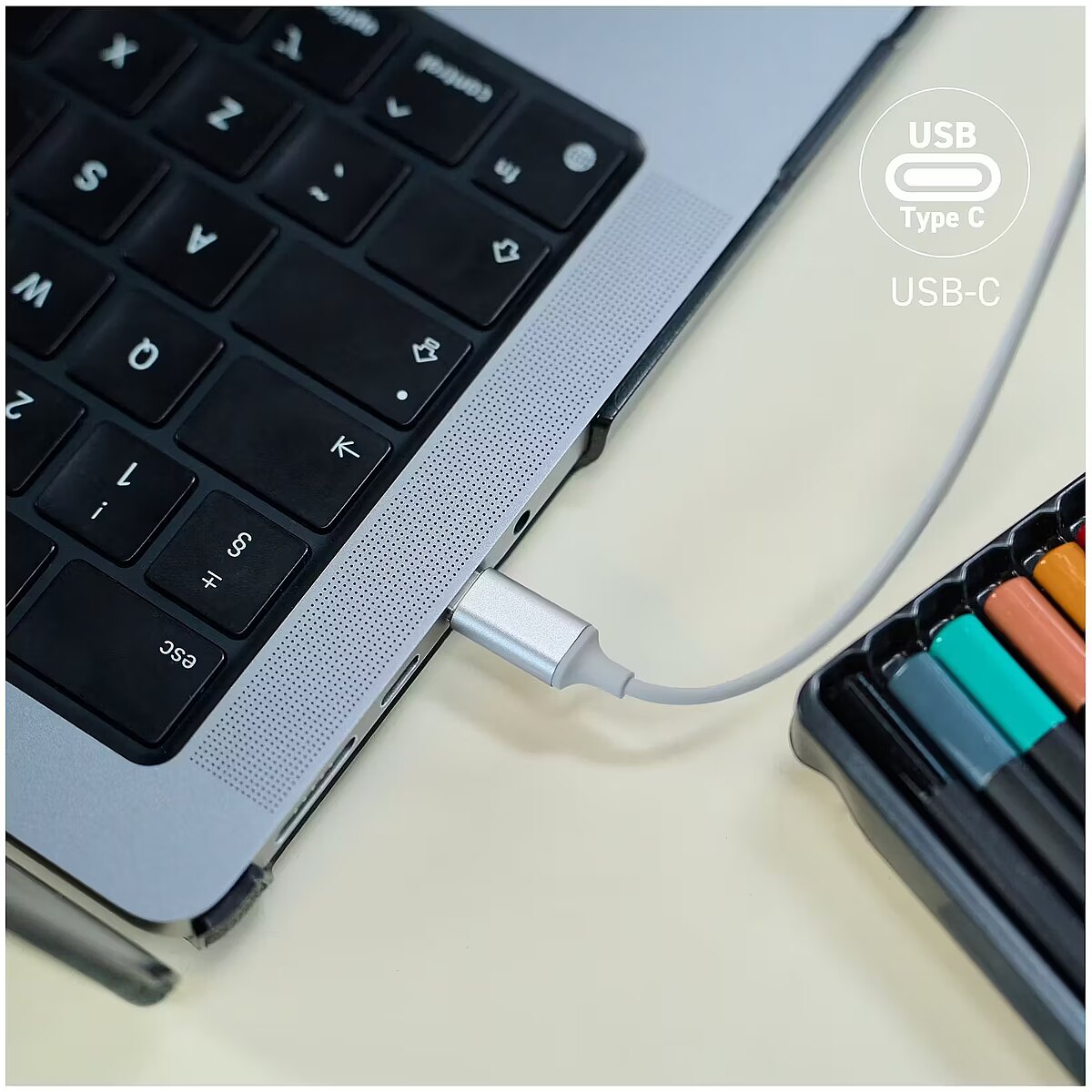 The headphones connection to the computer. A cable for a long-term and stable sound experience is the most popular type of connection.