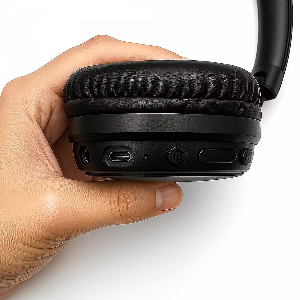 Description - Silence, comfort, and music all in one!   Active Noise Cancellation (ANC) Advanced ANC technology effectively eliminates surrounding sounds such as conversations, street noise, or public transport hum. This allows you to focus entirely on your music, work, or relaxation in complete silence and comfort.   Wireless Bluetooth freedom The modern Bluetooth module provides a stable, uninterrupted connection with your phone, laptop, or tablet. No cables, full convenience perfect for traveling, walking, or remote work, without worrying about tangled wires.   Foldable design The folding mechanism allows you to quickly collapse the headphones into a compact size, making them easy to fit in your bag or backpack. A practical solution for anyone who wants to take them on the go, to work, or to university without the risk of damage.   Comfortable, soft ear cushions The ergonomic design and soft foam adapt perfectly to the shape of your head, ensuring comfort even during long hours of use. These headphones are designed for both work and extended music sessions.   Long battery life The high-capacity battery provides many hours of music playback or calls without the need for frequent charging. A perfect option for active and demanding users the headphones are always ready whenever you need them Key Product Features Advanced ANC technology Active noise cancellation reduces surrounding sounds, ensuring comfortable listening in any environment. Stable Bluetooth connection Reliable and smooth wireless connectivity, ideal for work, travel, and everyday activities. Transparency mode Allows you to stay aware of your surroundings without taking off the headphones, enhancing convenience and safety. Comfortable over-ear design Soft ear cushions and a lightweight build provide comfort even during long listening sessions. Long battery life on a single charge The high-capacity battery enables many hours of music playback and calls. High-quality sound Balanced audio with clear details and deep bass for a satisfying listening experience. Built-in microphone Ensures clear, crisp phone calls and online communication. Modern design Elegant styling makes the headphones look great during everyday use. Technical Specifications Type: Wireless over-ear Bluetooth headphones Technology: ANC active noise cancellation Bluetooth: 5.3 Range: Up to 10 meters Battery life: Up to 30 hours of music playback (without ANC) / up to 25 hours with ANC Charging time: Approx. 2 hours Sensitivity: 102 dB Impedance: 32 Frequency response: 20 Hz 20 kHz Microphone: Built-in, supports phone calls Controls: Buttons on the headphones
