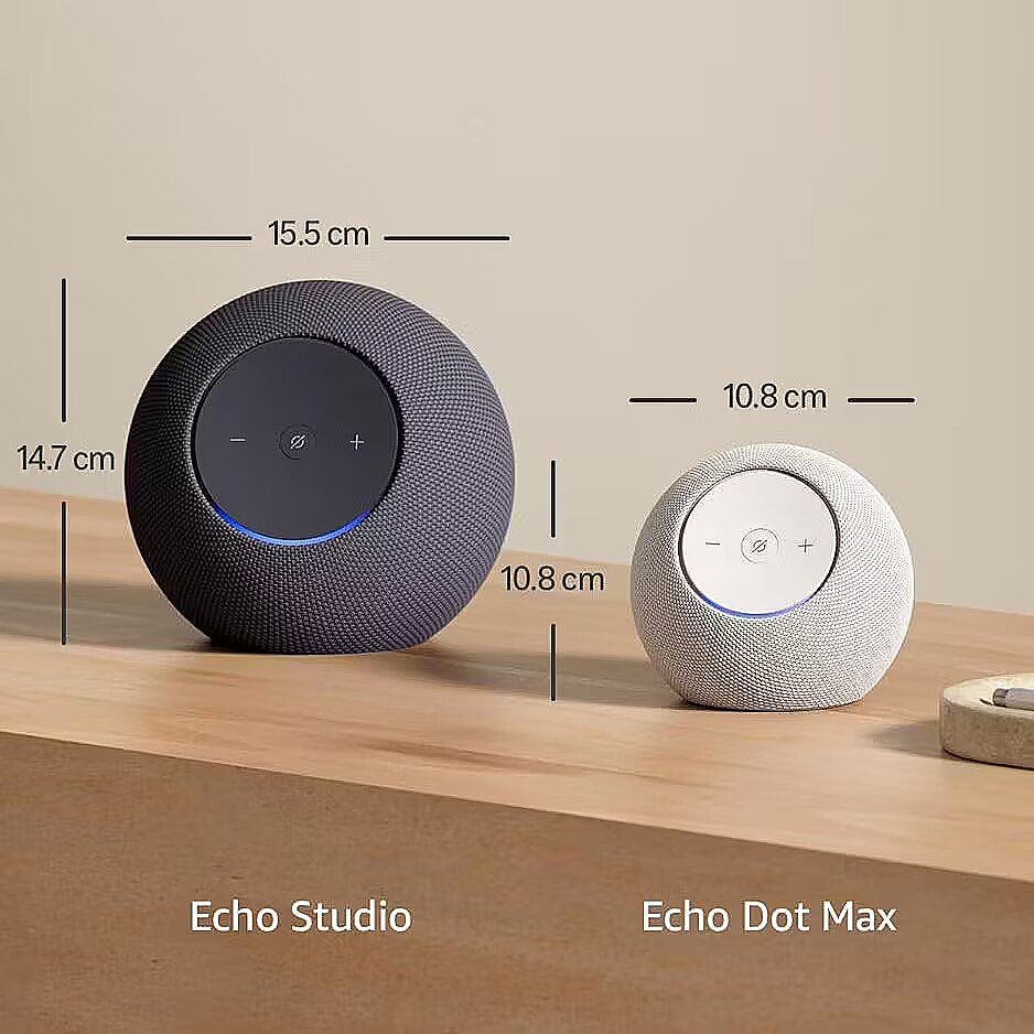 A brand new device in our line-up that takes Echo Dot audio to the max to deliver rich room-filling sound that automatically adapts to your space and fine-tunes playback. Features a built-in smart home hub and Omnisense technology for enhanced ambient experience. All powered by an AZ3 chip for fast performance. Music to your ears