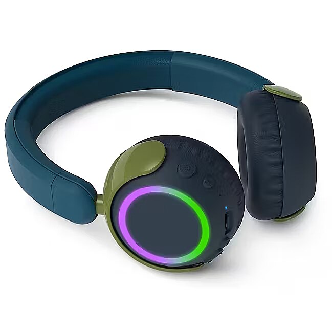 Type: wireless headphones for kidsDesign: on-earConnection: BluetoothBluetooth version: 5.0Volume limit: up to 85 dBDrivers: 32 mmMicrophone: built-inPlayback time: up to 28 hoursCharging time: approx. 2 hoursCharging port: USB-CControls: on-ear buttonsFoldable design: yesColor: blue
