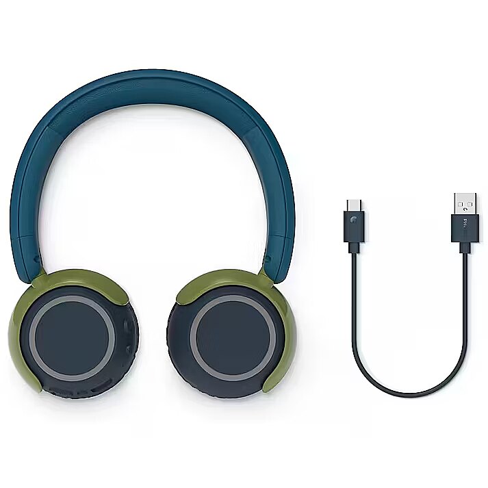 LongDesc - Always safe, always fun. Volume limits for home and travelSpecially designed to be extra safe for young ears, these headphones have been limited to 75 dB for listening at home or while studying. For listening in noisier environments outside of the home, parents can use the Philips Headphones app to set an 85 dB travel-mode volume limit.Kid-friendly comfort and easy to useBig, round control buttons on the bottom of the earcups make it easy for kids to use these headphones, while smaller earcups with soft earcup cushions make them comfortable to wear. The cushioned headband adjusts easily for a perfect fit and features dots on the back that help children see which way round to put the headphones on.Colourful design with LED lightsColourful LEDs in the earcups combine with the multi-coloured design of these headphones to make them stand out in all the right ways. The LEDs can be set to glow different colours: brilliant for kids who want to express their own sense of style.Wireless audio sharing doubles the funIf your kid's friends also have a pair of Philips K4200 headphones, they can create a wireless daisy chain between the headphones and listen to the same audio. One pair of headphones is connected to the smart device they want to listen from, and then both friends need to press the multi-function button four times to enter audio-sharing mode.Tough, durable and foldableMade from durable, non-toxic materials, these headphones are built to withstand the rigours of daily use by kids. When not in use, they can be folded flat for easy storage in a drawer. Or you can fold them flat and inwards, creating a compact bundle that easily fits into pockets and bags.Philips Headphones app with parental controlsOur companion app can be used to set playtime limits, so kids don't listen for too long. Or use the app to switch these headphones from their default setting where volume is limited to 75 dB to a travel mode that limits volume to 85 dB.Long battery life and easy wireless connectionsFrom weekend fun to homework, these headphones keep up with up to 45 hours of play time from a full charge (which takes 2 hours via the included USB-C cable). A dedicated BT button on the headphones makes it easy for kids to pair with their devices, and multipoint connectivity lets them connect to more than one device at once.Clear calls with friends and familyA built-in microphone lets kids take calls with family and friends. A dedicated mic picks up the sound of their voice, while a noise-reduction algorithm quietens some of the background noise from the world around them.Warm, natural sound. Philips sound signatureFrom films to music, they'll love what they hear! These on-ear kids' headphones feature large 32 mm drivers, tuned to the Philips sound signature. Whatever they're into, they'll enjoy a warm, natural sound with deep bass.Thoughtful design. Responsible packagingThese headphones feature recycled materials, while our plastic-free packaging uses FSC-certified recycled cardboard and soy-based ink.Always safe, always fun. Volume limits for home and travel*Always safe, always fun. Volume limits for home and travel*Specially designed to be extra safe for young ears, these headphones have been limited to 75 dB for listening at home or while studying. For listening in noisier environments outside of the home, parents can use the Philips Headphones app to set an 85 dB travel-mode volume limit.*Kid-friendly comfort and easy to useKid-friendly comfort and easy to useBig, round control buttons on the bottom of the earcups make it easy for kids to use these headphones, while smaller earcups with soft earcup cushions make them comfortable to wear. The cushioned headband adjusts easily for a perfect fit and features dots on the back that help children see which way round to put the headphones on.Colourful design with LED lightsColourful design with LED lightsColourful LEDs in the earcups combine with the multi-coloured design of these headphones to make them stand out in all the right ways. The LEDs can be set to glow different colours: brilliant for kids who want to express their own sense of style.Philips Headphones app with parental controlsPhilips Headphones app with parental controlsOur companion app can be used to set playtime limits, so kids don't listen for too long. Or use the app to switch these headphones from their default setting where volume is limited to 75 dB to a travel mode that limits volume to 85 dB.RCS-certified recycled plastic. Responsible packagingRCS-certified recycled plastic. Responsible packagingWe use post-consumer recycled plastics in this product, and our packaging is plastic-free. Inserts are printed on recycled paper with soy-based ink, and the packaging itself is made from FSC-certified recycled cardboard.Wireless audio sharing doubles the funIf your kid's friends also have a pair of Philips K4200 headphones, they can create a wireless daisy chain between the headphones and listen to the same audio. One pair of headphones is connected to the smart device they want to listen from, and then both friends need to press the multi-function button four times to enter audio-sharing mode.Tough, durable and foldableMade from durable, non-toxic materials, these headphones are built to withstand the rigours of daily use by kids. When not in use, they can be folded flat for easy storage in a drawer. Or you can fold them flat and inwards, creating a compact bundle that easily fits into pockets and bags.Long battery life and easy wireless connectionsFrom weekend fun to homework, these headphones keep up with up to 45 hours of play time from a full charge (which takes 2 hours via the included USB-C cable). A dedicated BT button on the headphones makes it easy for kids to pair with their devices, and multipoint connectivity lets them connect to more than one device at once.Clear calls with friends and familyA built-in microphone lets kids take calls with family and friends. A dedicated mic pick
