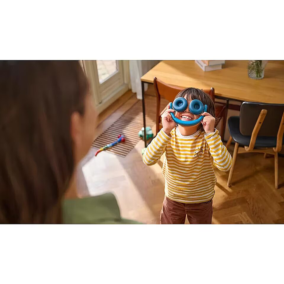 Dzięki kolorowym diodom LED na nausznikach i rozrywkowej funkcji bezprzewodowego udostępniania dźwięku, te słuchawki są stworzone z myślą o dzieciach. Ich głośność jest dostosowana do młodych uszu, a specjalny tryb podróżny pozwala dzieciom bezpiecznie słuchać także w bardziej hałaśliwym otoczeniu. Zawsze bezpieczne, zawsze dające radość. Ograniczenia głośności w domu i w podróży
