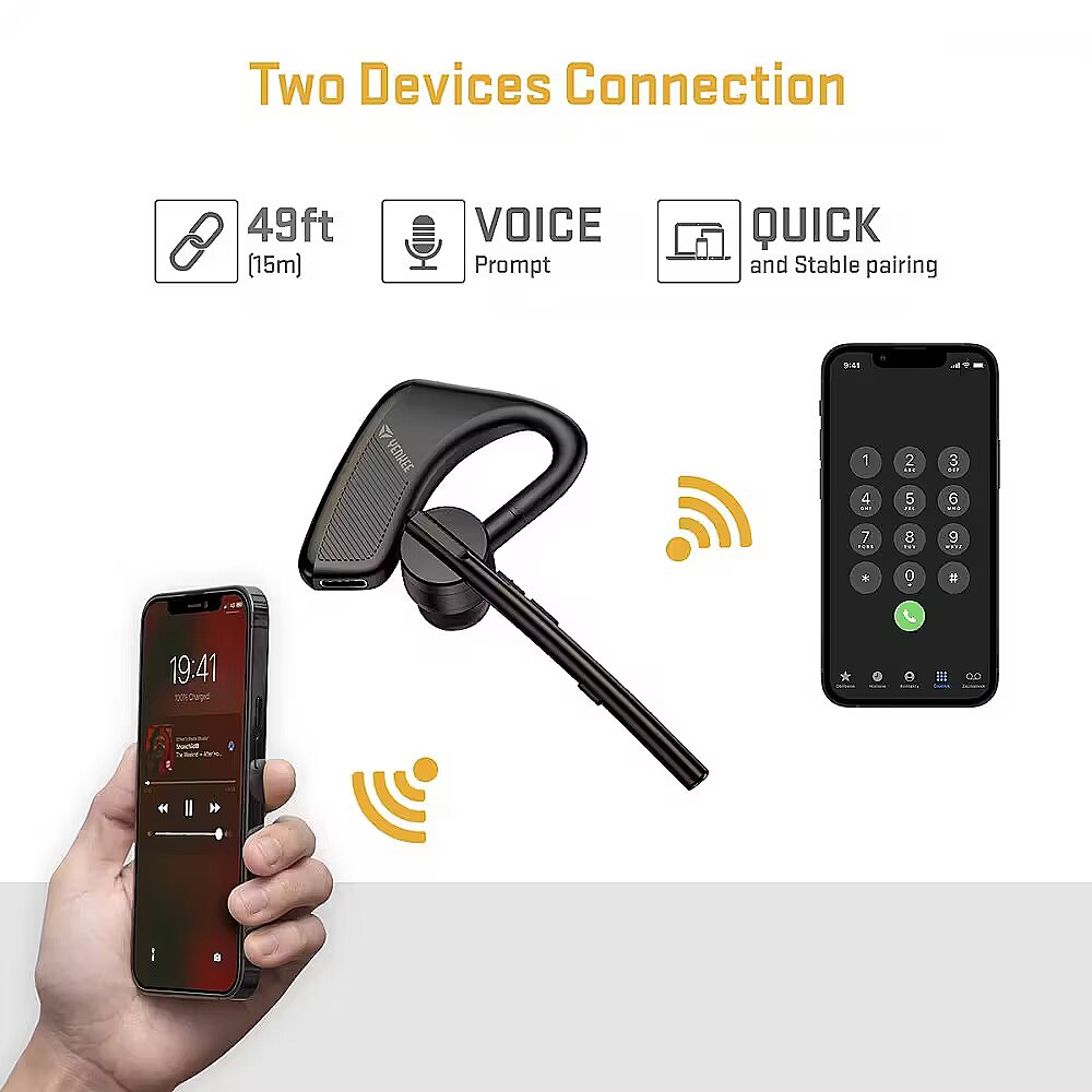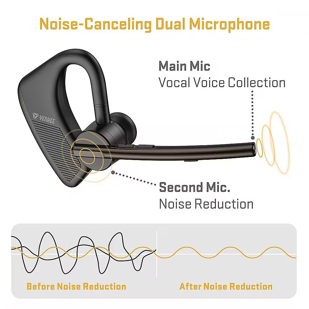 Description - FLEET PRO Wireless Speakerphone Extra-long battery life Connects two devices Noise reduction and clear voice pickup The YHF 20BK wireless headset features an advanced dual-microphone system with noise reduction for natural sound and Bluetooth v5.2 for reliable and stable connectivity. The high-performance Qualcomm 3040 single-chip solution ensures high audio performance combined with low power consumption. The reversible microphone (270° and 180° rotation on two axes) allows you to wear the headphones on either the right or left ear and position the microphone at the perfect angle for optimal sound capture. The headset is equipped with multi-function buttons for quick mute and volume adjustment, providing user-friendly control over phone calls, music, or voice assistants.