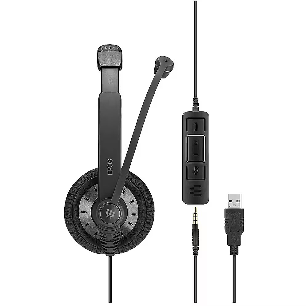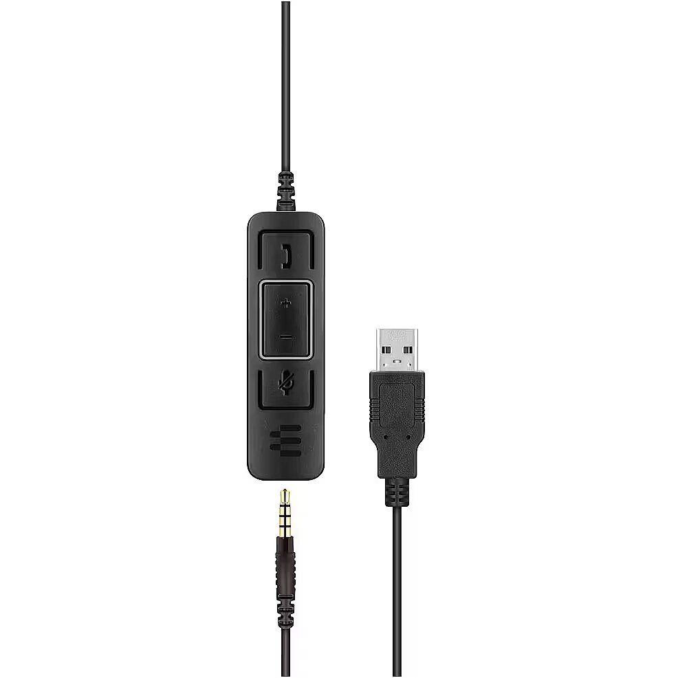 The headphones connection to the computer. A cable for a long-term and stable sound experience is the most popular type of connection.
