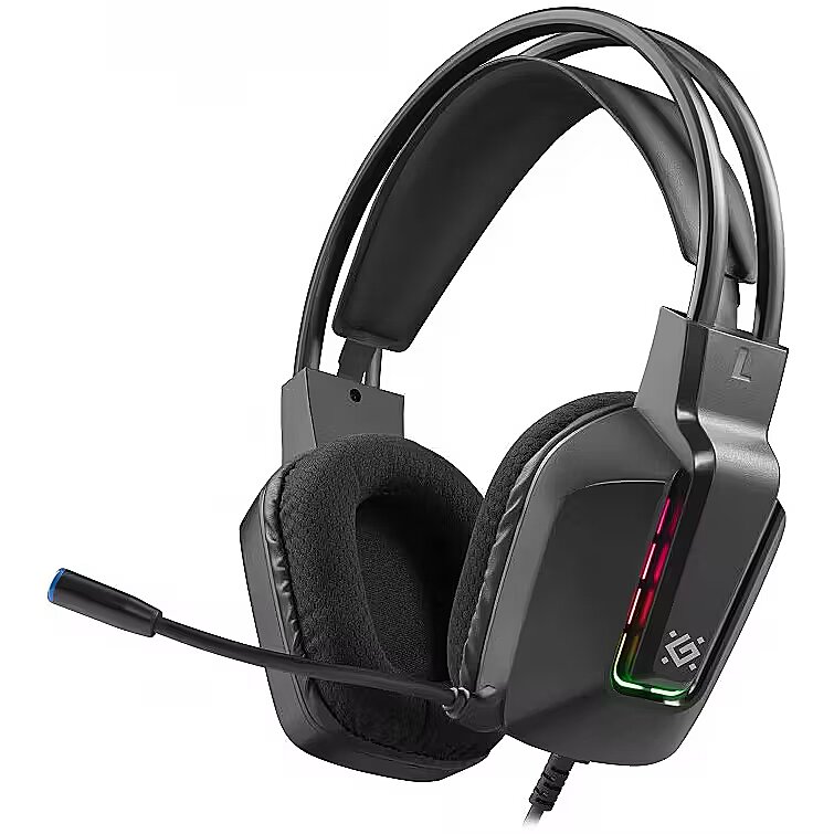 Description - Self-adjusting ear cushions for comfortable long-term wear. The hard outer shell ensures a proper fit around the ears, while the soft inner padding provides comfort. Headphones with active noise cancellation for maximum sound isolation, ideal for noisy environments or when full focus is required during gaming. Large ear cups RGB lighting Dual headband Closed-back headphones Comfortable headband and ear cups made of soft, breathable material Noise-canceling microphone Volume control No need to use the computer to adjust the volume