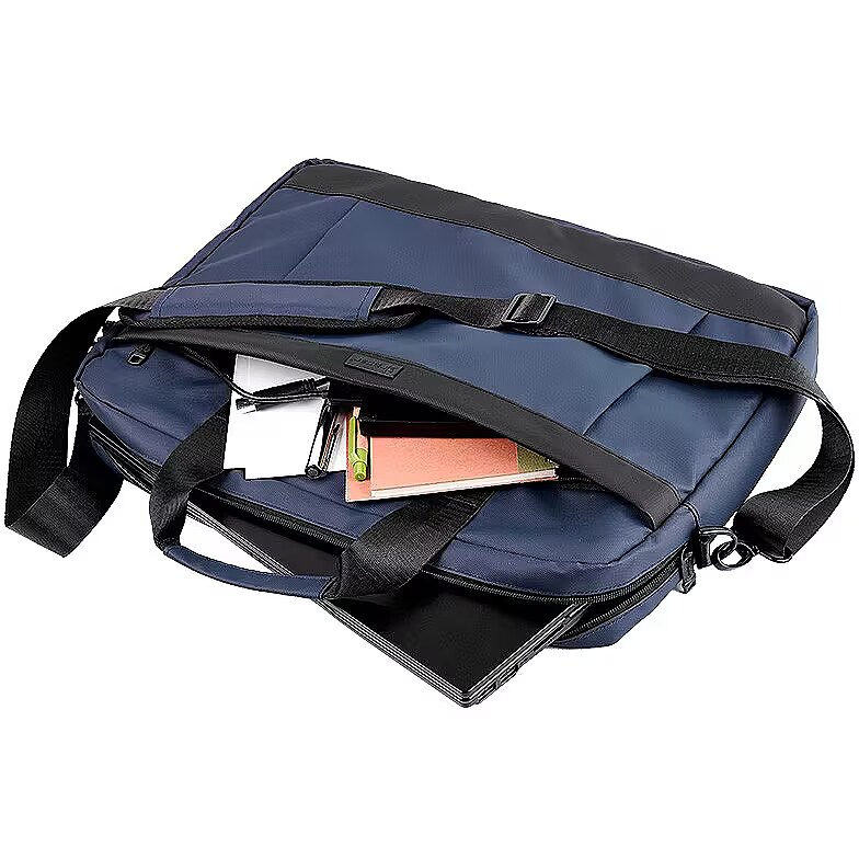 Description - Torba na notebooka 15,6 cali BL7 Estetyczna torba BL7 na notebooka 15,6" w ciekawym granatowym odcieniu zapewnia zarówno bezpieczeństwo jak i funkcjonalność. Solidne rozwiązania takie jak wytrzymały materiał, metalowe zaczepy oraz wygodne rączki oraz regulowany pasek na ramię gwarantują wygodę i satysfakcję z użytkowania na długie lata. Specjalne przegrody i zewnętrzna kieszeń ułatwiające utrzymanie porządku Wewnętrzny wzmocniony przedział na komputer wraz z zabezpieczającą taśmą na rzep Taśma szybkiego mocowania np. do walizki z wysuwaną rączką Dwustronne suwaki zabezpieczone przed niekorzystnymi warunkami atmosferycznymi Wygodny odpinany pasek na ramię Trwałość i wygoda