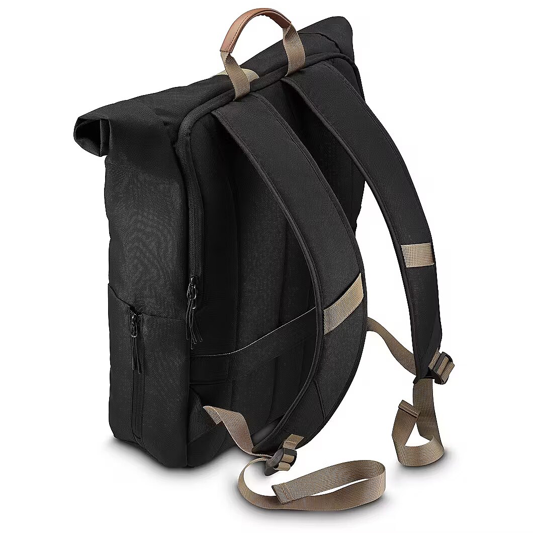 MediumDescription EN - The Hama Silvan laptop backpack is a spacious, sustainable and stylish companion for everyday life, university, work or travel. Made from 100% recycled polyester, it features a flexible roll-top closure that adapts to your load, offering a volume of 15 to 22 litres. A fully padded laptop compartment with a dedicated tablet sleeve, smart organiser layout and comfortable shoulder straps ensure convenience throughout the day. • Made from 100% recycled polyester (rPET)• Flexible roll-top design with 15–22 litre capacity• Fully padded laptop compartment for all-round protection• Dedicated tablet compartment for devices up to 12.9"• Spacious front pockets for everyday essentials• Padded, adjustable and breathable shoulder straps• Trolley strap for easy attachment to a suitcase