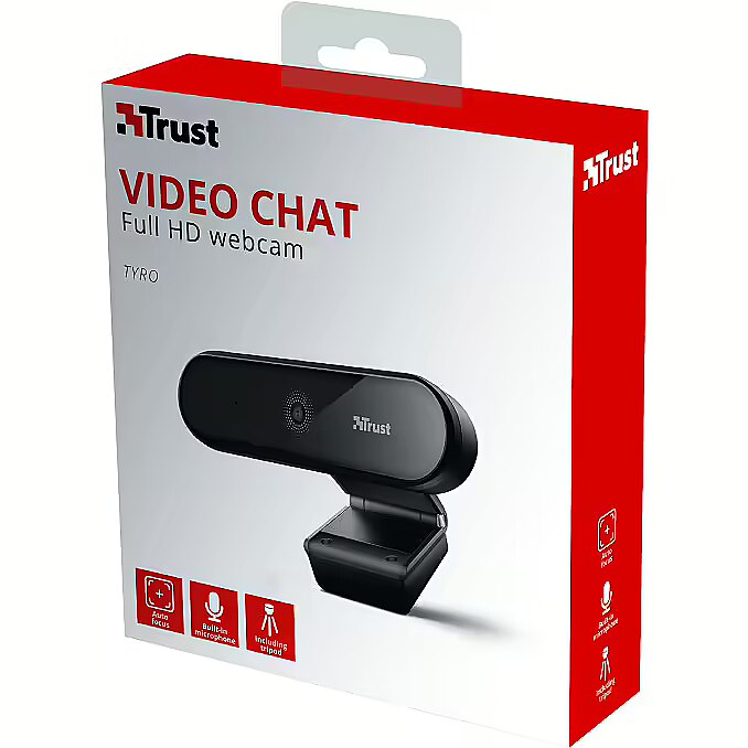 LongDesc - Comfortable ConferencingWhat if you could put an end to awkward, low-lit, fuzzy sounding conference calls? At a time when you want to be able to connect in the best way possible via video, the Trust Tyro Full HD Webcam offers the solution; all the features that make video calling and video streaming that much more comfortable are packed into one device.Look and Sound Your BestWith premium audio and video quality, rest assured that you will look and sound great on every call and video stream, regardless of where you are. The full HD 1080p resolution wide angle lens and auto-focus ensure razor-sharp video, while the automatic white balance offers outstanding low-light performance, for clear video in any condition.Easy to UseWith a plug & play setup, video calling has never been easier; once the USB receiver has been plugged into your PC or laptop, you can start calling straight away. The Trust Tyro Full HD Webcam works with Zoom, Teams, Skype and other video calling software. The webcam clips easily onto your monitor, sits nicely on a desk and also comes with a tripod stand, making this ideal device versatile enough to suit any office or home office setup.