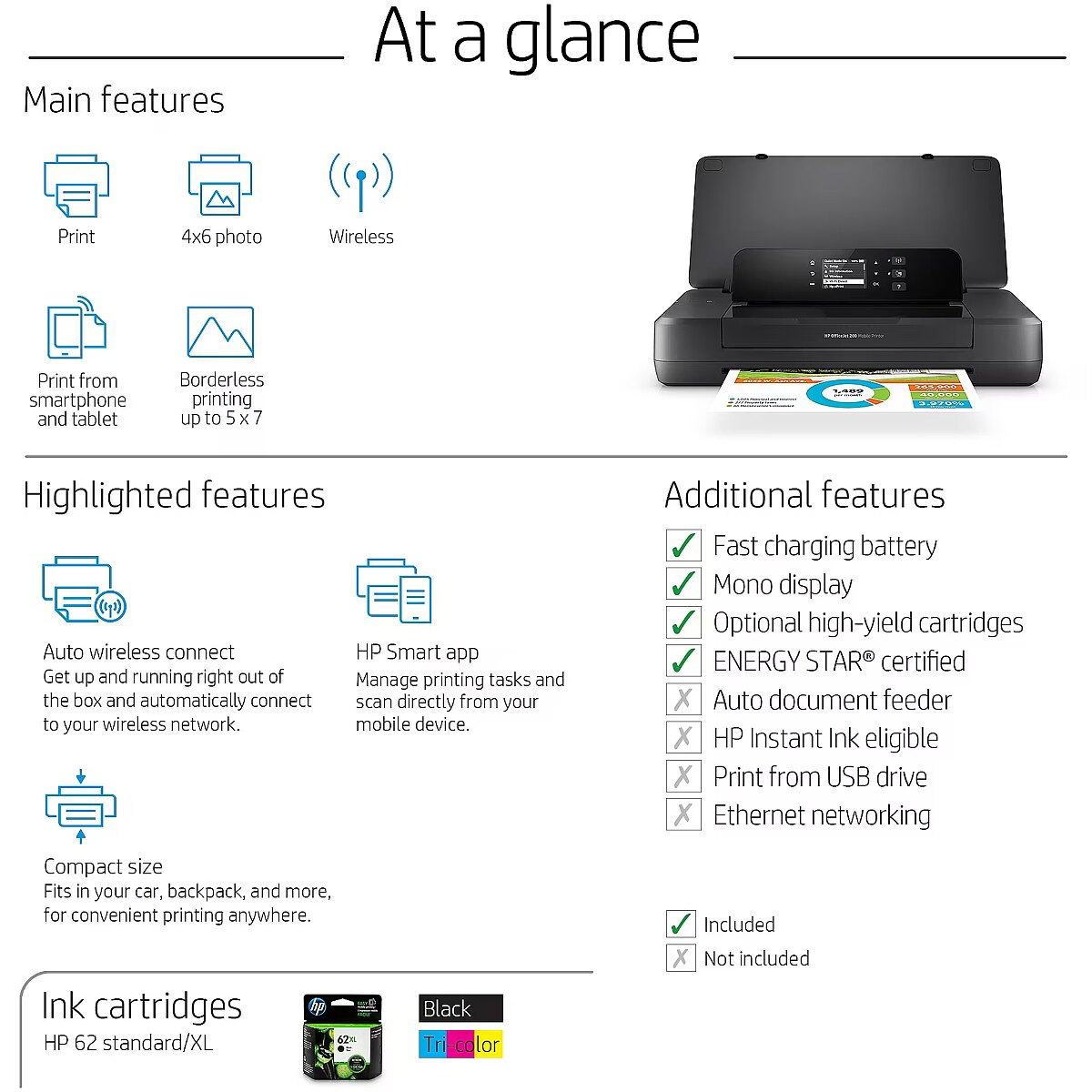 ShortSummaryDescription - HP Officejet 200 Mobile Wireless Color Printer, Colour, 4800 x 1200 DPI, 2, A4, 500 pages per month, 10 ppm