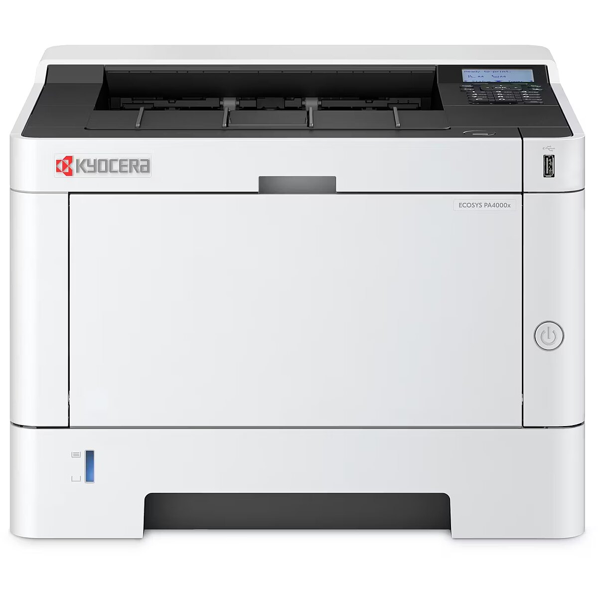 LongSummaryDescription - KYOCERA ECOSYS PA4000x. Print technology: Laser. Number of print cartridges: 1, Maximum duty cycle: 80000 pages per month. Maximum resolution: 1200 x 1200 DPI. Maximum ISO A-series paper size: A4. Print speed (black, normal quality, A4/US Letter): 40 ppm, Duplex printing. Display: LCD, Product colour: Black, White