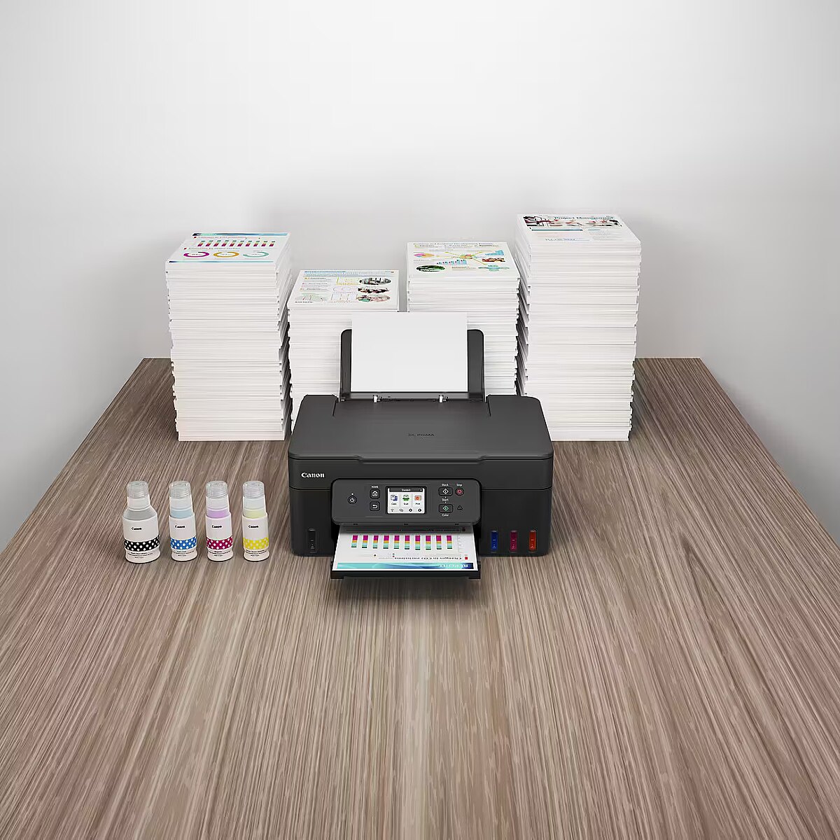LongDesc - Canon PIXMA G3590Enjoy low-cost, high-quality documents and photos and fast two-sided prints with this easy to use, refillable and Wi-Fi-equipped 3-in-1 home printer.Fast, high-quality two-sided prints. Huge savingsMake huge savings on home printing, print two-sided documents quickly and print wirelessly with ease with this highly efficient MegaTank printer. Thanks to its refillable ink tanks, a single set of ink bottles can deliver up to 8.100 prints1, making running costs refreshingly low compared to cartridge-based printers.Ultra-low running costsMake huge savings over the printer’s lifetime thanks to refillable high-yield ink tanks. Print 6.000 pages from a black ink bottle (7.600 in Economy) and 7.700 pages from a set of colour ink bottles (8,100 in Economy)Fast, high-quality resultsBoth documents and photos look fantastic, thanks to pigment black ink and dye-based colour inks. And they arrive quickly too, with print speeds of 11.0 ipm (mono) and 6.0 ipm (colour) and automatic duplex printingSimple operationEasy, straightforward day-to-day use thanks to a tilting 2.7” colour LCD touch screen, user-friendly Switch UI menu and single-action print head installationWireless connectivityPrint seamlessly from a range of devices with Wi-Fi connectivity and support for PIXMA Cloud Link (now with no login requirement), Canon PRINT app, Apple AirPrint and more. Scan documents to your smartphone in seconds with a simple QR code.Easy at-home maintenanceKeep downtime to a minimum thanks to the user-replaceable maintenance cartridge and mechanical ID no-squeeze ink bottlesWork with more mediaGet creative at home with the ability to print on magnetic, iron-on and matte photo paper