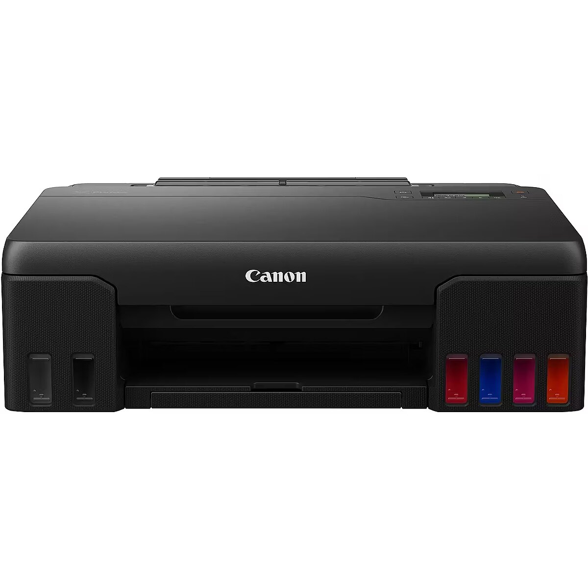 Technical_details - PIXMA G550, inkjet printer Advanced printing technology, high quality: The PIXMA G550 achieves long ranges with refillable ink tanks - a complete ink set for several thousand pages is already included in the scope of delivery. The G550 supports borderless photo printing up to DIN A4 format and can be easily controlled via mobile devices such as smartphones or tablets. Compact construction and simple design make it an attractive partner on the desk. In addition to a USB interface, the G550 supports WLAN and Wi-Fi direct printing. Type: Inkjet Printer Color: Black EAN: 4549292172928 Manufacturer No.: 4621C006AA Series: Pixma Connections: 1x USB-B 2.0 Communication: WiFi direct printing, WLAN Formats: A4, A6, B5, C5, DL (DIN long), Legal, Letter, 10x15 cm, 13x18 cm, 20x25 cm Media: glossy paper, plain paper Operation: function keys Display: LC display (black and white) Consumables: Inks: GI-53 black (up to 3700 pages/ISO), GI-53 cyan, GI-53 magenta, GI-53 yellow, GI-53 red, GI-53 gray (each up to 8000 pages/ISO) Compatible: MacOS, MacOS X, Windows 7, Windows 8, Windows 10 Volume: operation | 50.5dB Printer: Print Area | 210x297mm Printer: Resolution | color | 4800x1200dpi Printer: Resolution | Black | 4800x1200dpi Printer: inks/heads | 2 Printer: Printing Technology | Kind | Color inkjet printing Printer: Speed | Black | Black (ISO A4): 3.9 ppm Printer: Speed | color | Color (ISO A4): 3.9 ppm Printer: Speed | 15x10 cm | 47s Power supply: mains voltage | AC 100 - 240V (50Hz/60Hz) Power supply: energy consumption | Operation | 14 watts Power supply: energy consumption | Standby | 0.6 watts Feature: Apple AirPrint, Mopria certified, Custom sizes supported: 18 x 25 cm, 127 x 127 mm, 89 x 89 mm, 55 x 91 (credit card size). Adjustable media formats: 55 x 89 - 89 x 1200 mm. Media weights supported: 64 - 105 gsm. Mobile Apps: Canon PRINT Inkjet/SELPHY App, Creative Park App, Easy-PhotoPrint Editor App. The device supports PIXMA Cloud Link for smartphones and tablets. Accessories: available | Power cord, setup CDRom, 6 high yield bottles of dye-based inks (1 each of Bk/C/M/Y/R/GY) Dimensions: device | Width: 445mm x Height: 340mm x Depth/Length: 136mm Weight: 2.1kg