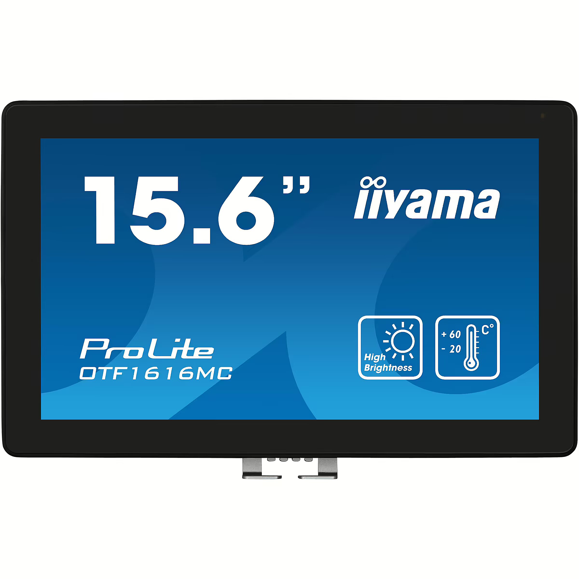 LongSummaryDescription - iiyama OTF1616MC-B1. Display diagonal: 39.6 cm (15.6"), Display resolution: 1920 x 1080 pixels, HD type: Full HD, Display technology: LCD, Response time: 25 ms, Native aspect ratio: 16:9, Viewing angle, horizontal: 178°, Viewing angle, vertical: 178°. VESA mounting. Product colour: Black